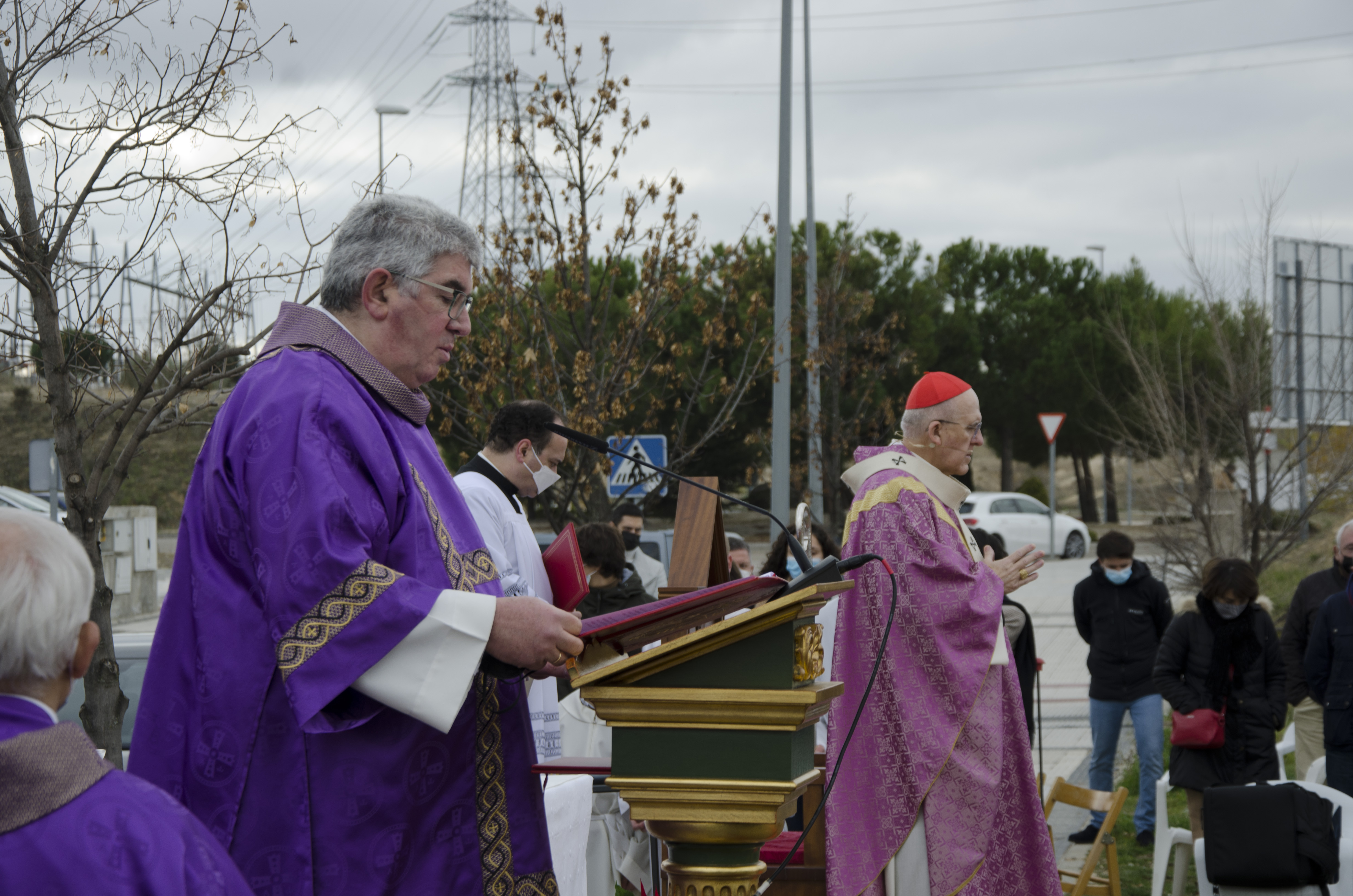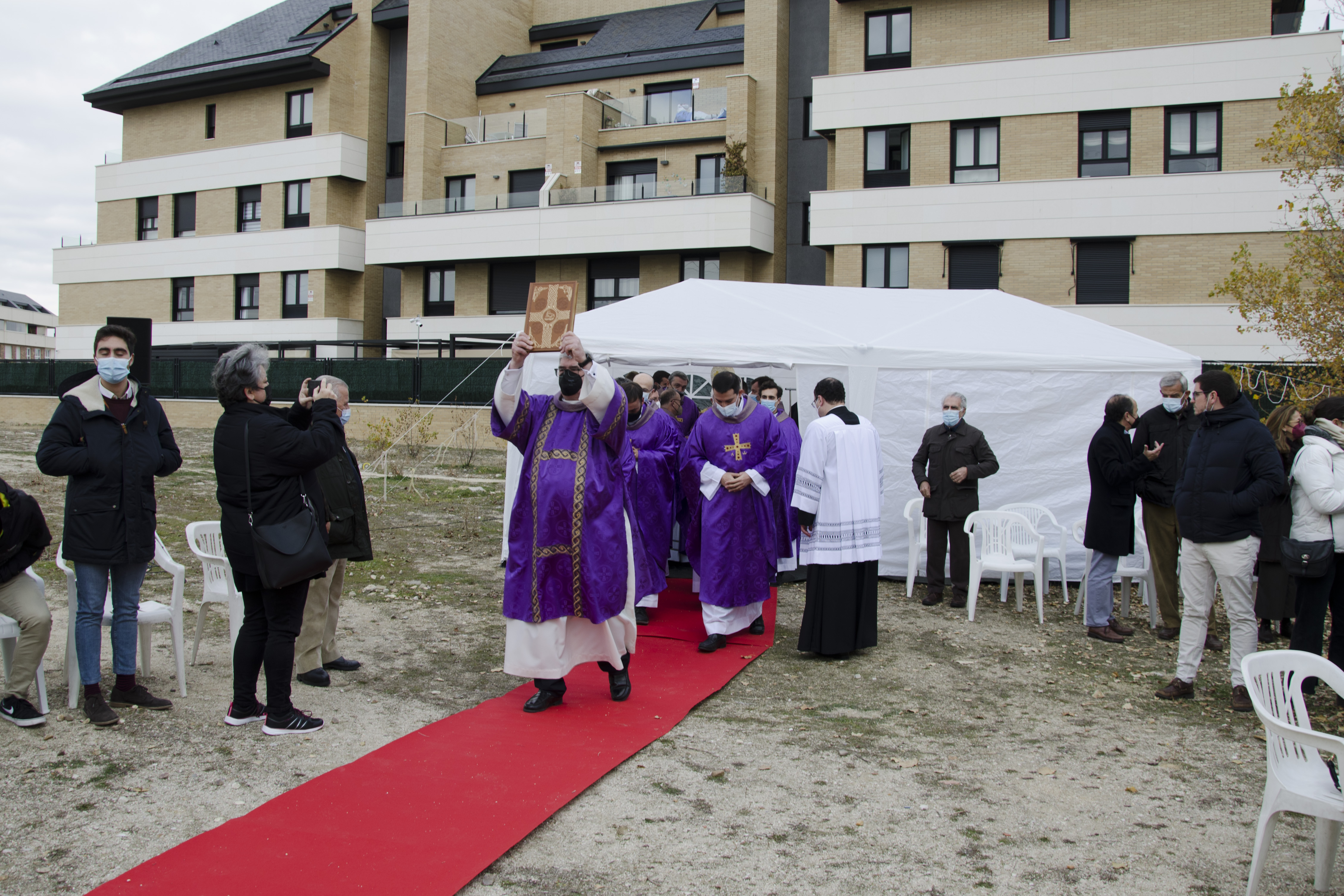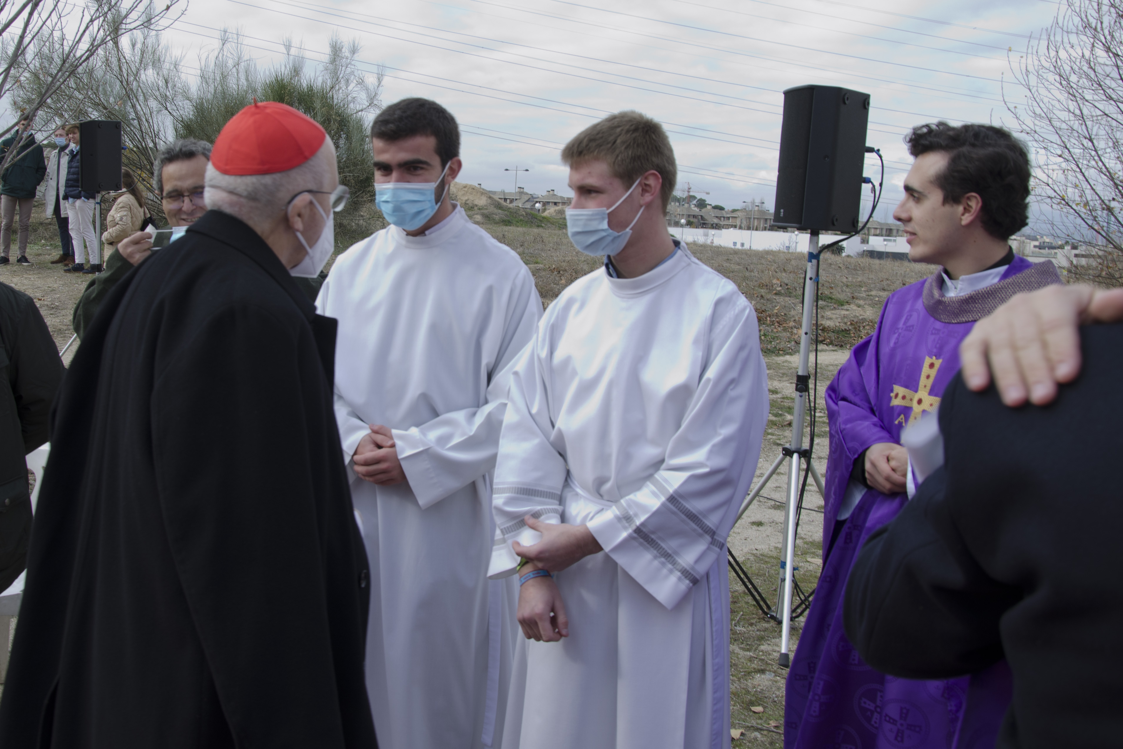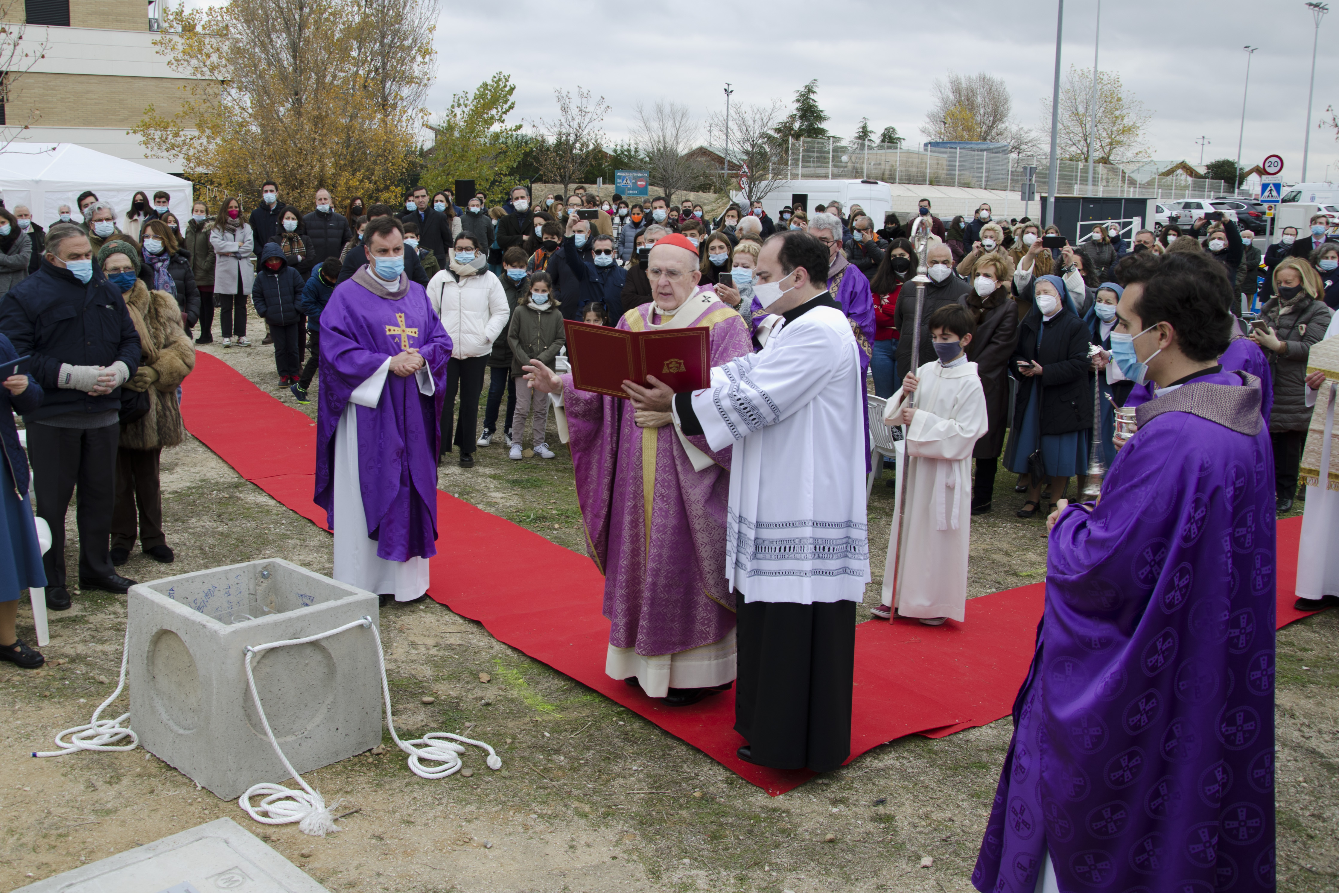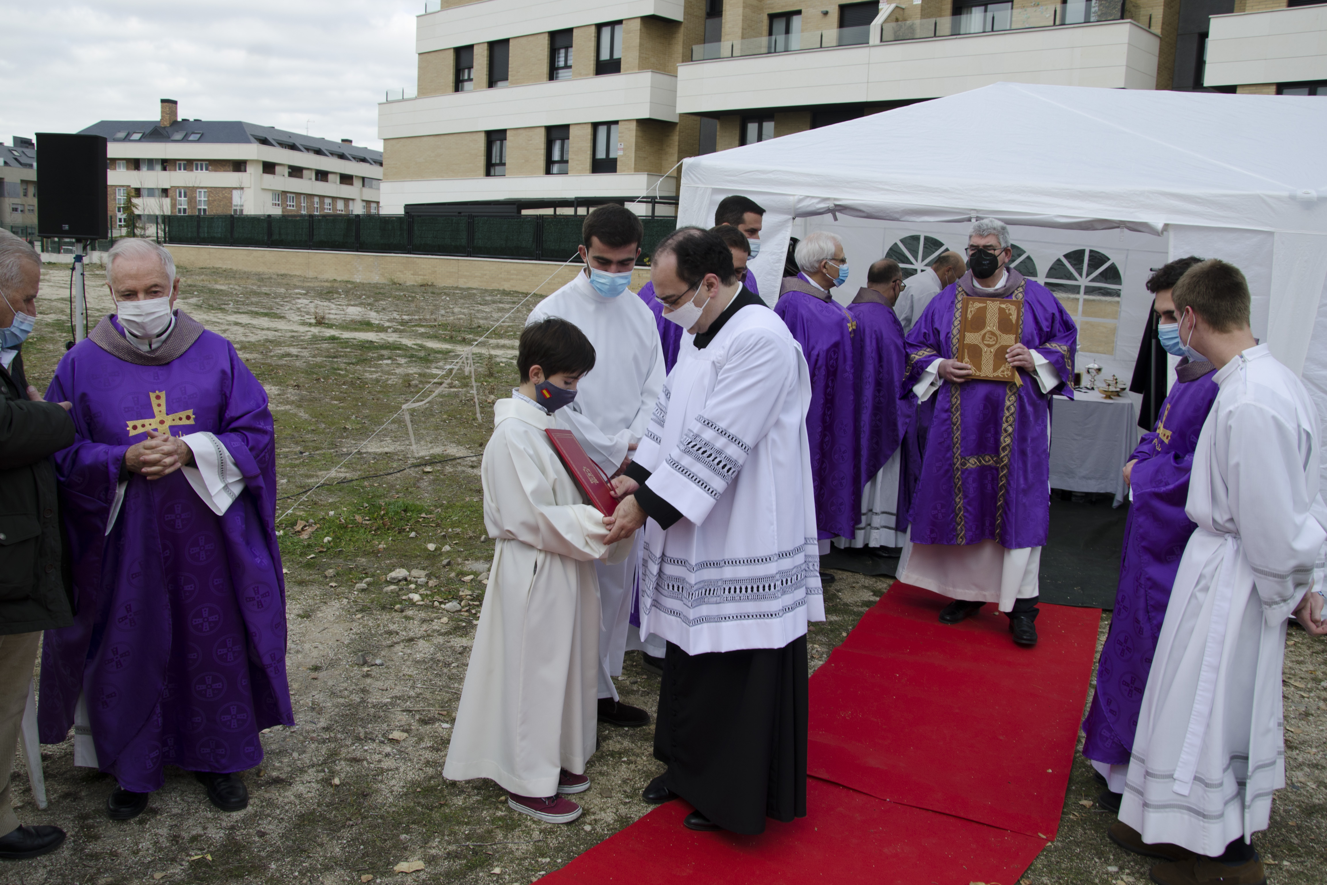 Con gran alegría pudimos asistir a la colocación de la primera piedra del nuevo templo y locales de nuestra parroquia en el terreno que se encuentra en la calle Flauta Mágica esquina Barbero de Sevilla. Lo presidió el Cardenal Arzobispo de Madrid, D. Carlos Osoro acompañado del Cura Párroco D. David Benítez Alonso y con la asistencia de numerosos sacerdotes, entre ellos todos los que habían prestado su servicio en la parroquia.