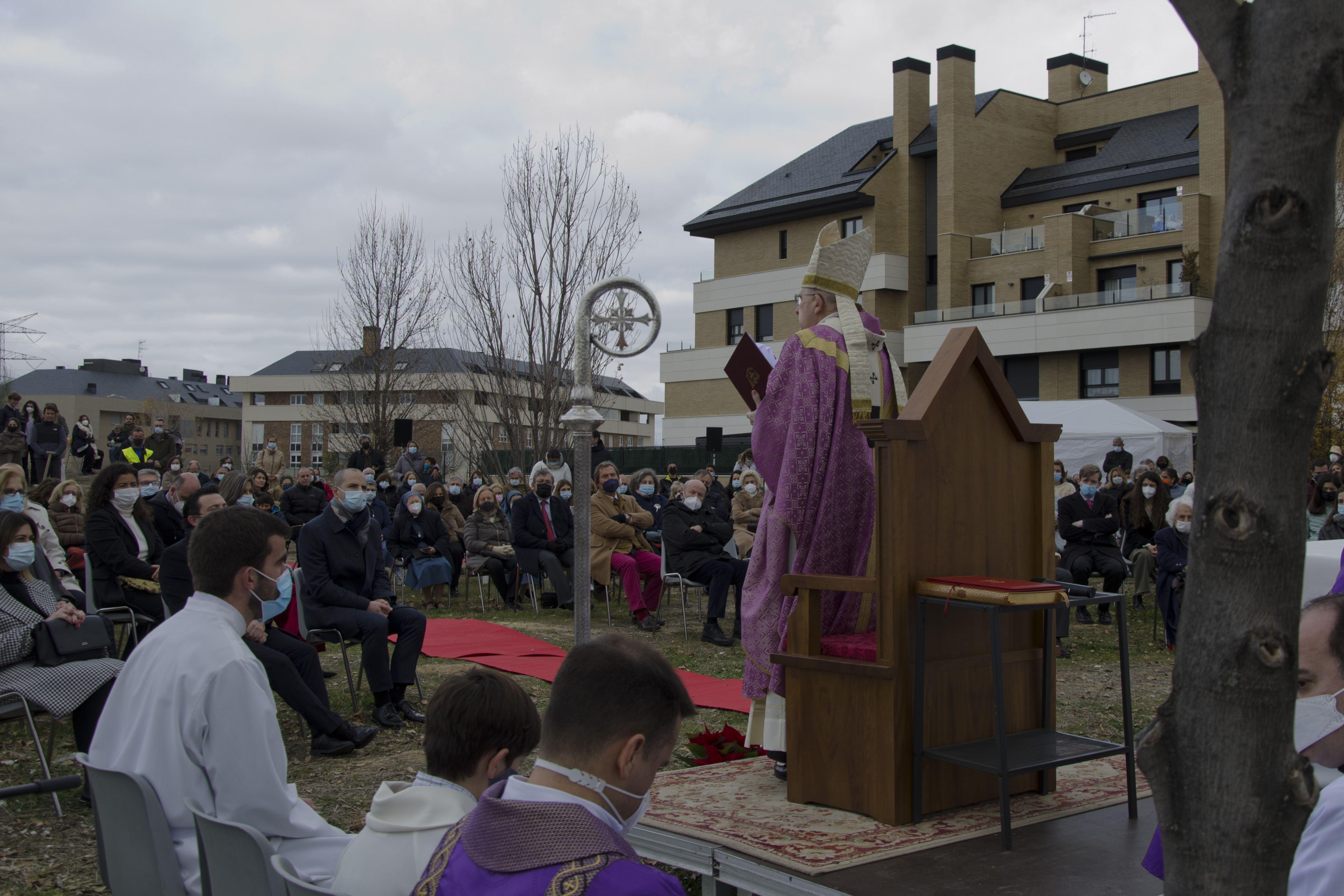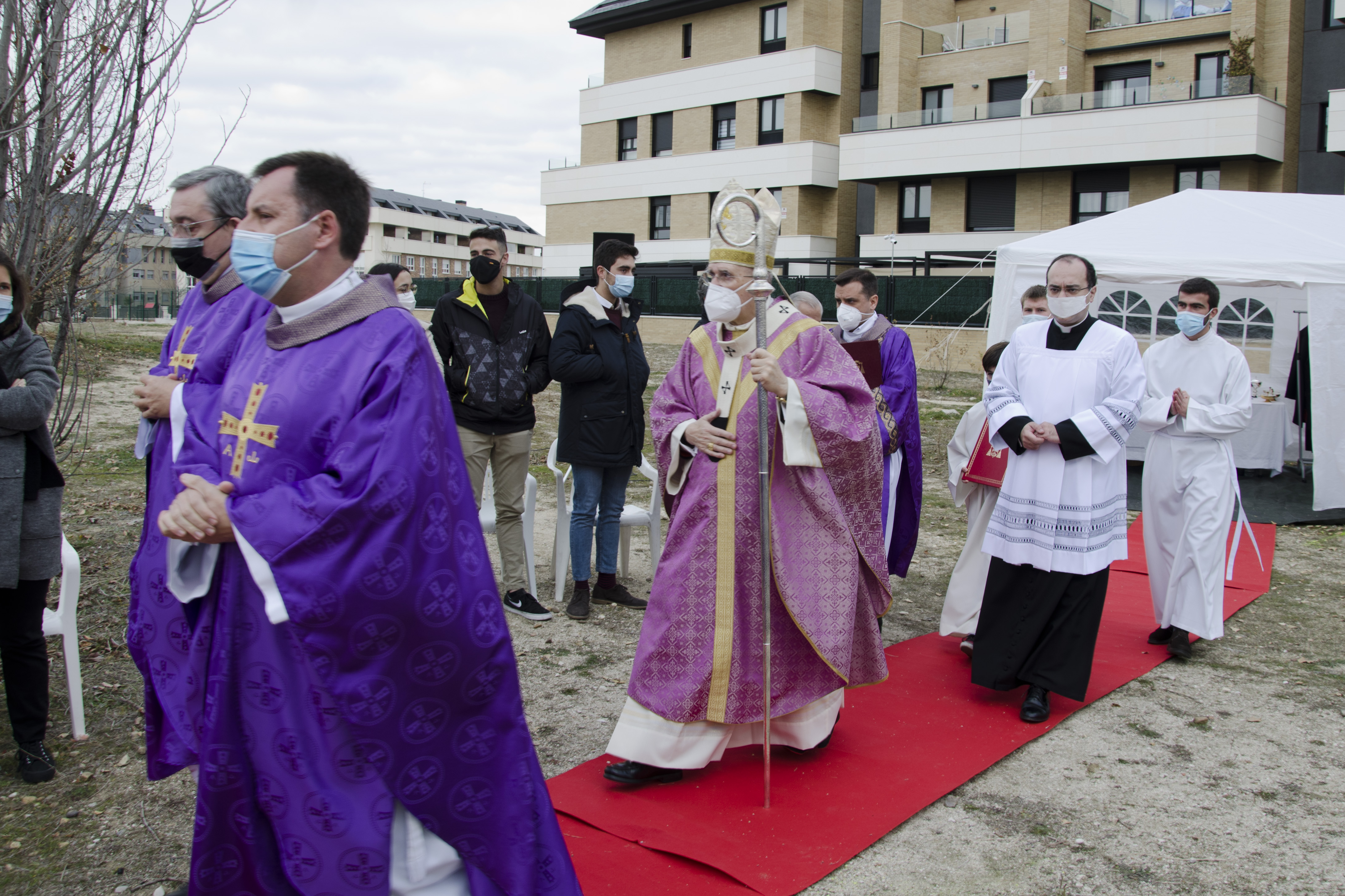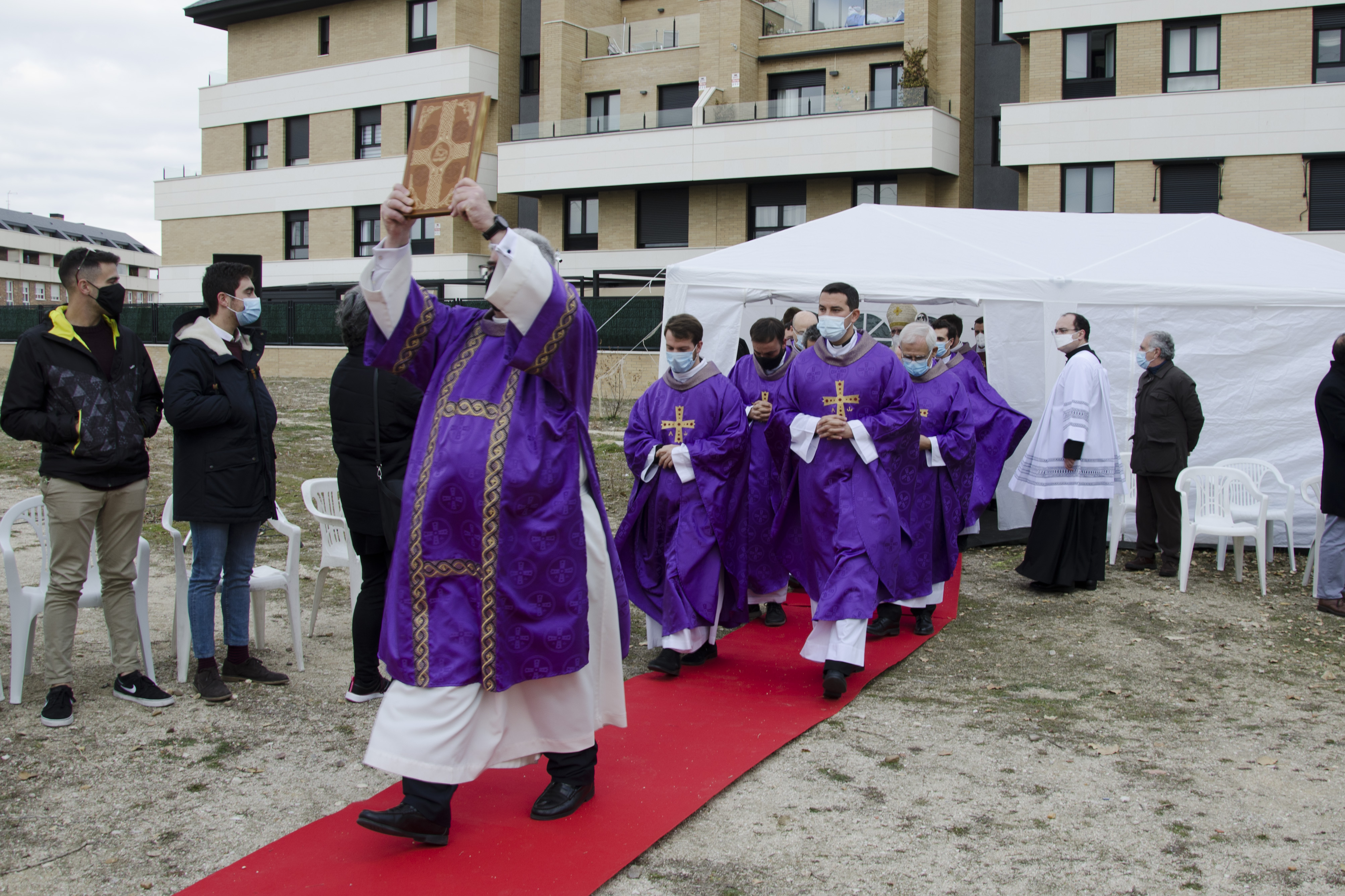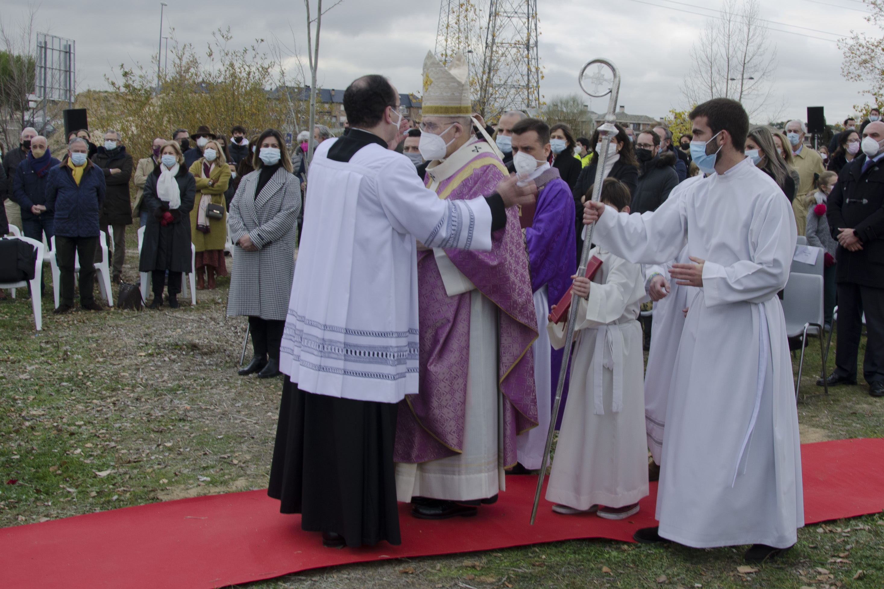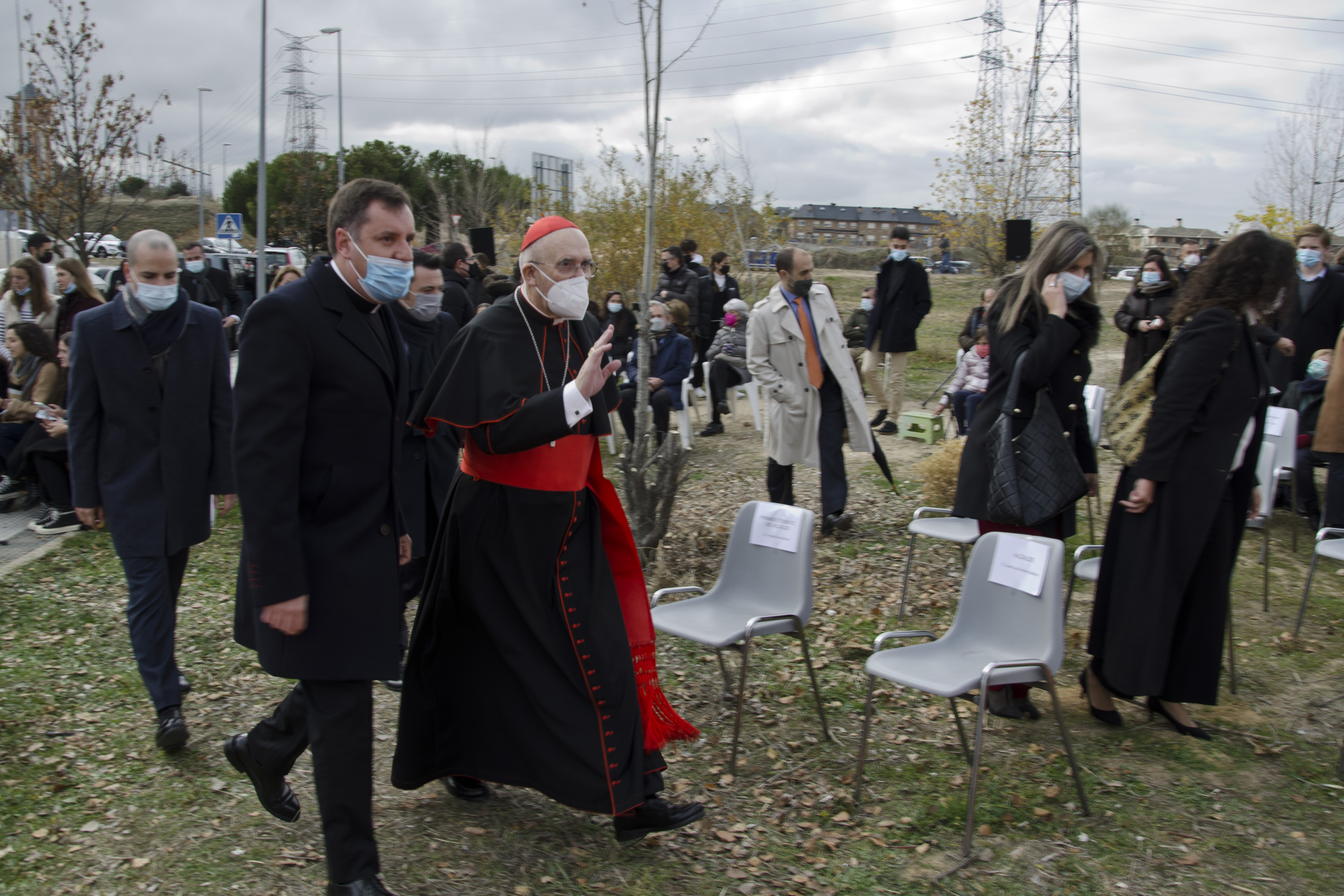 Con gran alegría pudimos asistir a la colocación de la primera piedra del nuevo templo y locales de nuestra parroquia en el terreno que se encuentra en la calle Flauta Mágica esquina Barbero de Sevilla. Lo presidió el Cardenal Arzobispo de Madrid, D. Carlos Osoro acompañado del Cura Párroco D. David Benítez Alonso y con la asistencia de numerosos sacerdotes, entre ellos todos los que habían prestado su servicio en la parroquia.