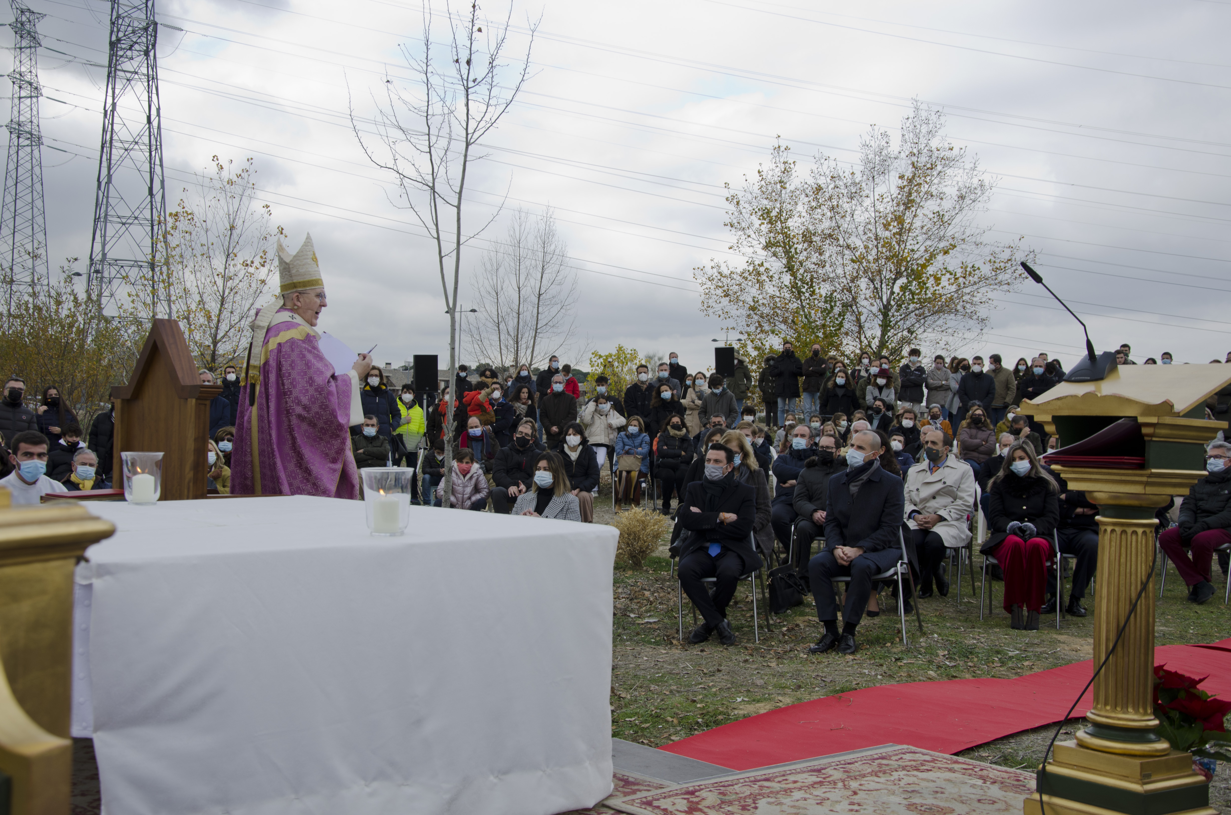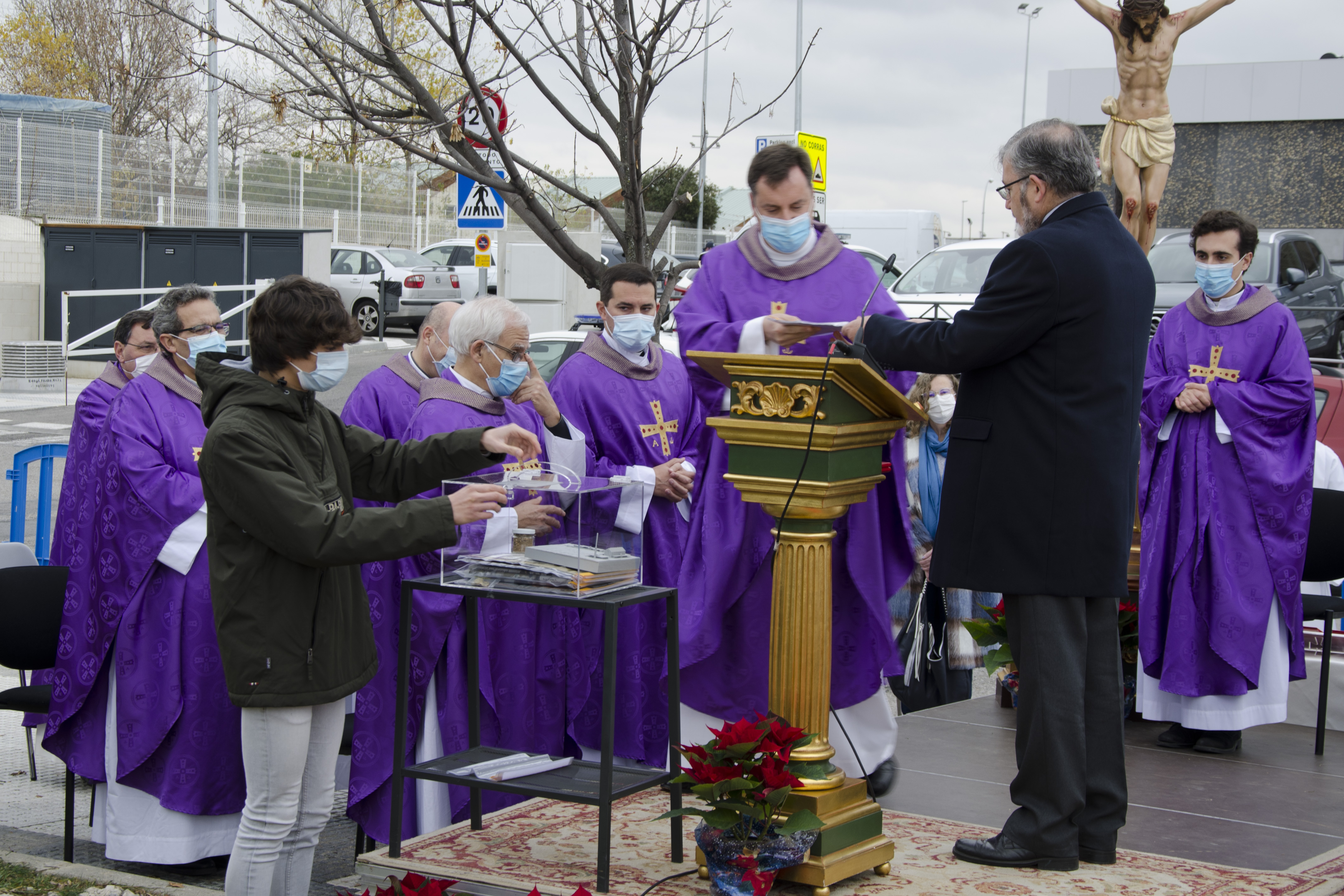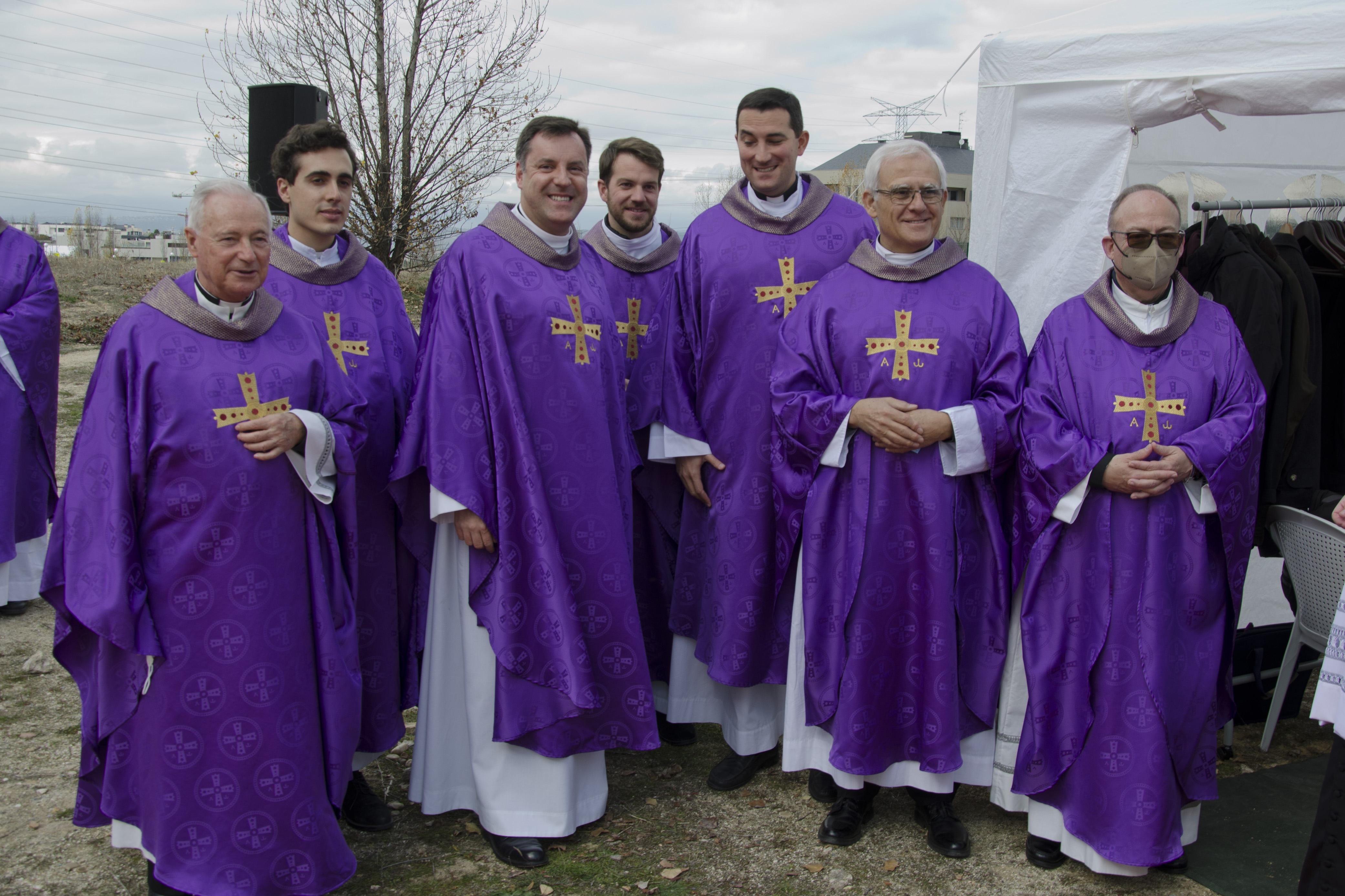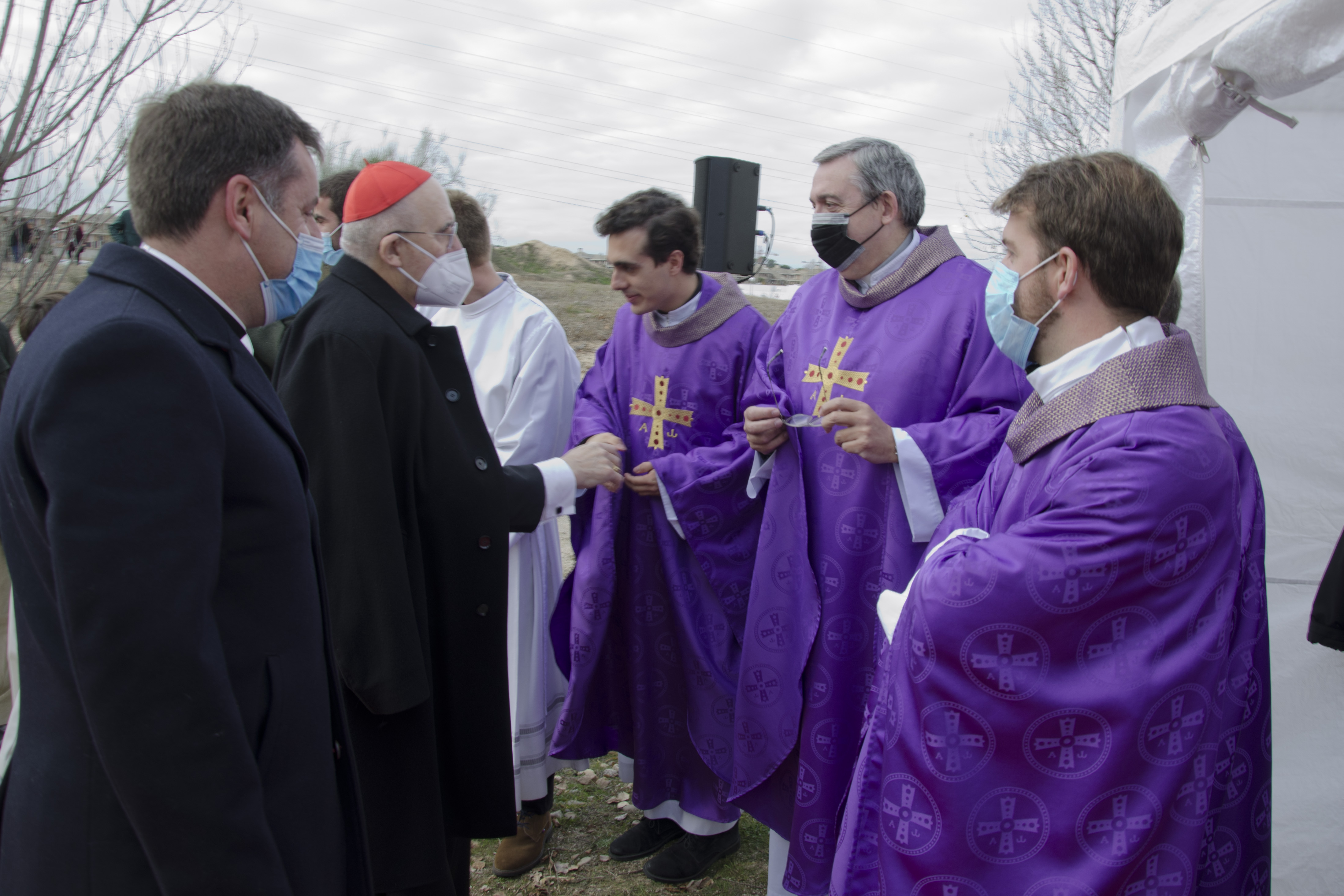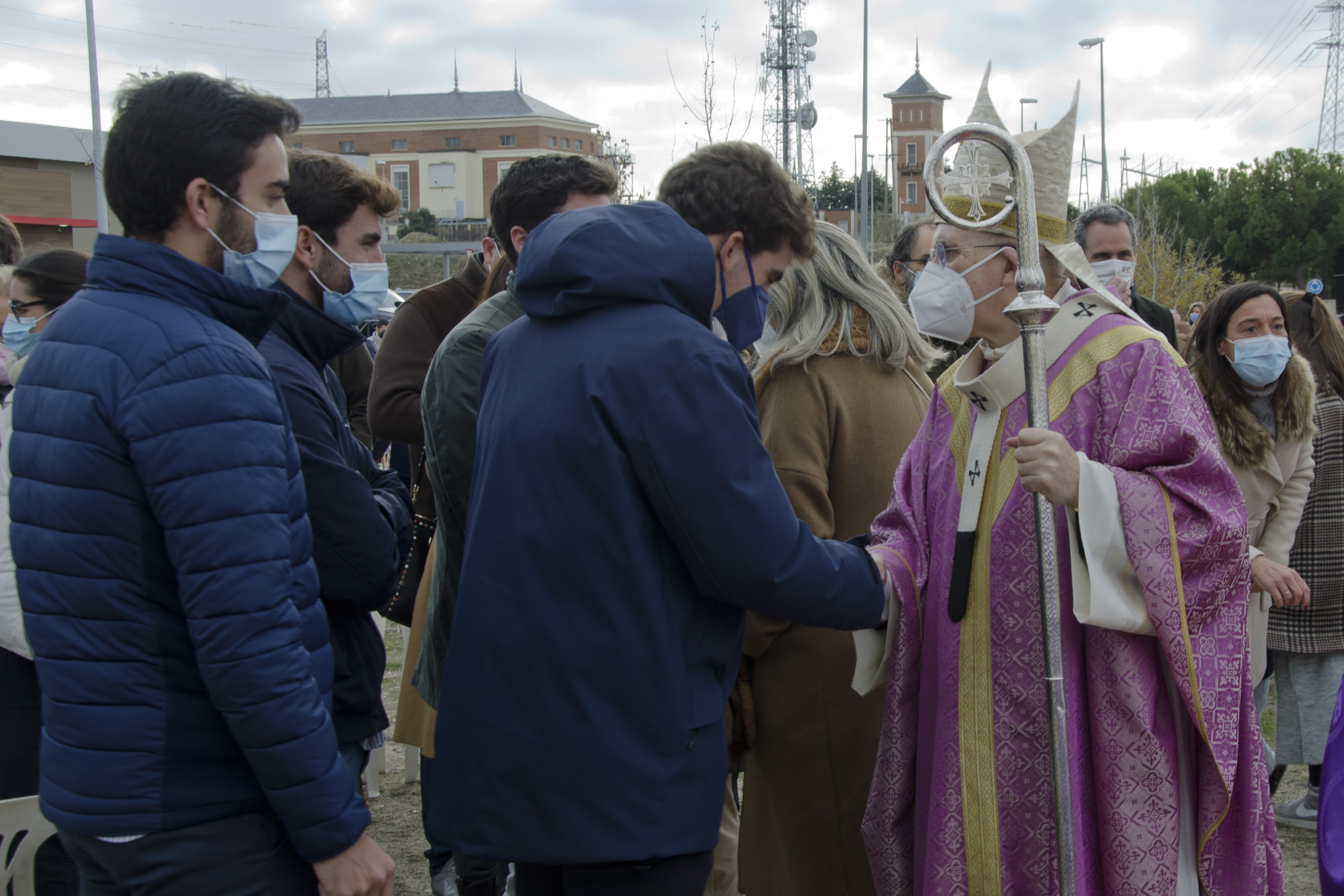 Con gran alegría pudimos asistir a la colocación de la primera piedra del nuevo templo y locales de nuestra parroquia en el terreno que se encuentra en la calle Flauta Mágica esquina Barbero de Sevilla. Lo presidió el Cardenal Arzobispo de Madrid, D. Carlos Osoro acompañado del Cura Párroco D. David Benítez Alonso y con la asistencia de numerosos sacerdotes, entre ellos todos los que habían prestado su servicio en la parroquia.
