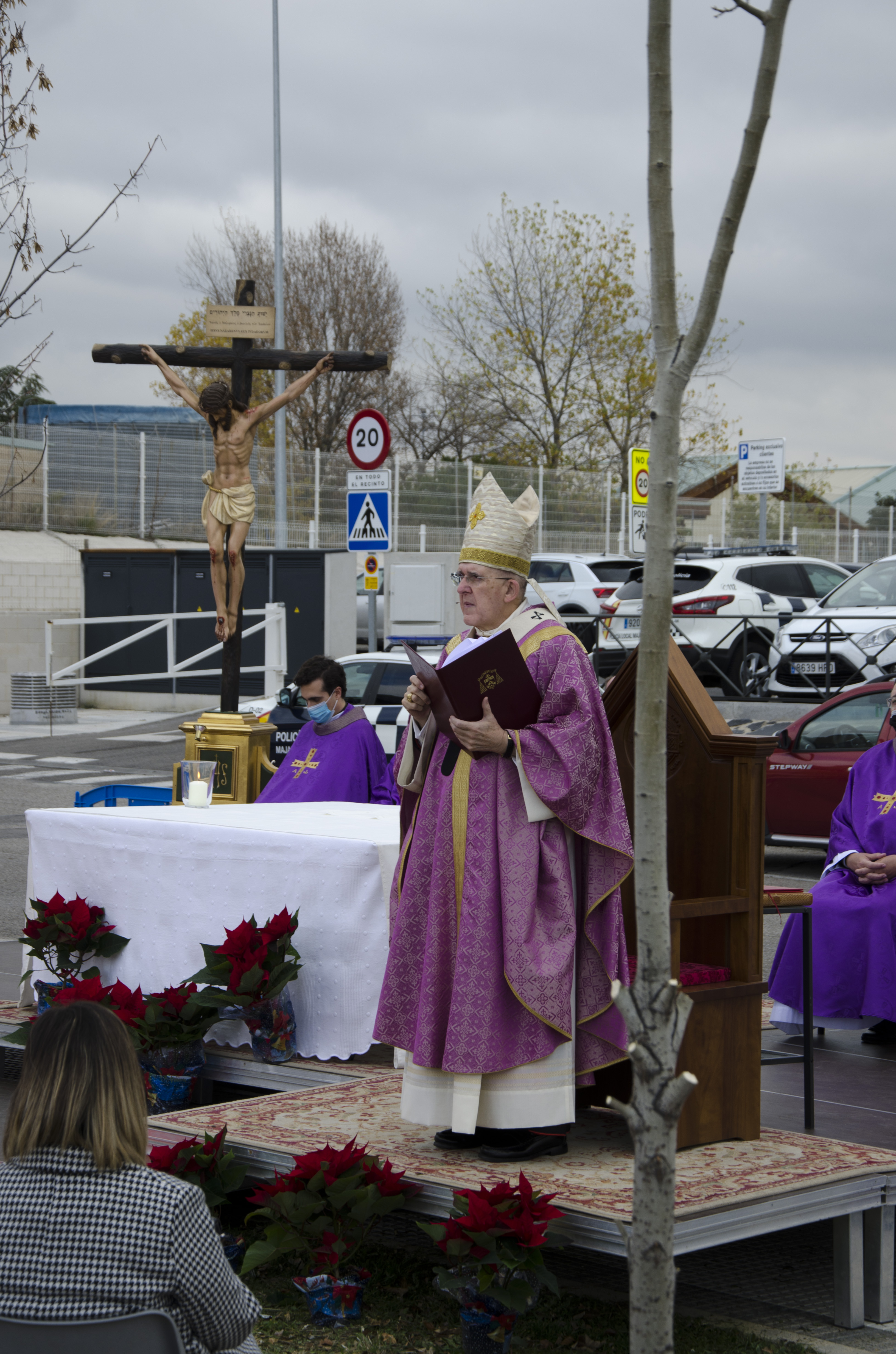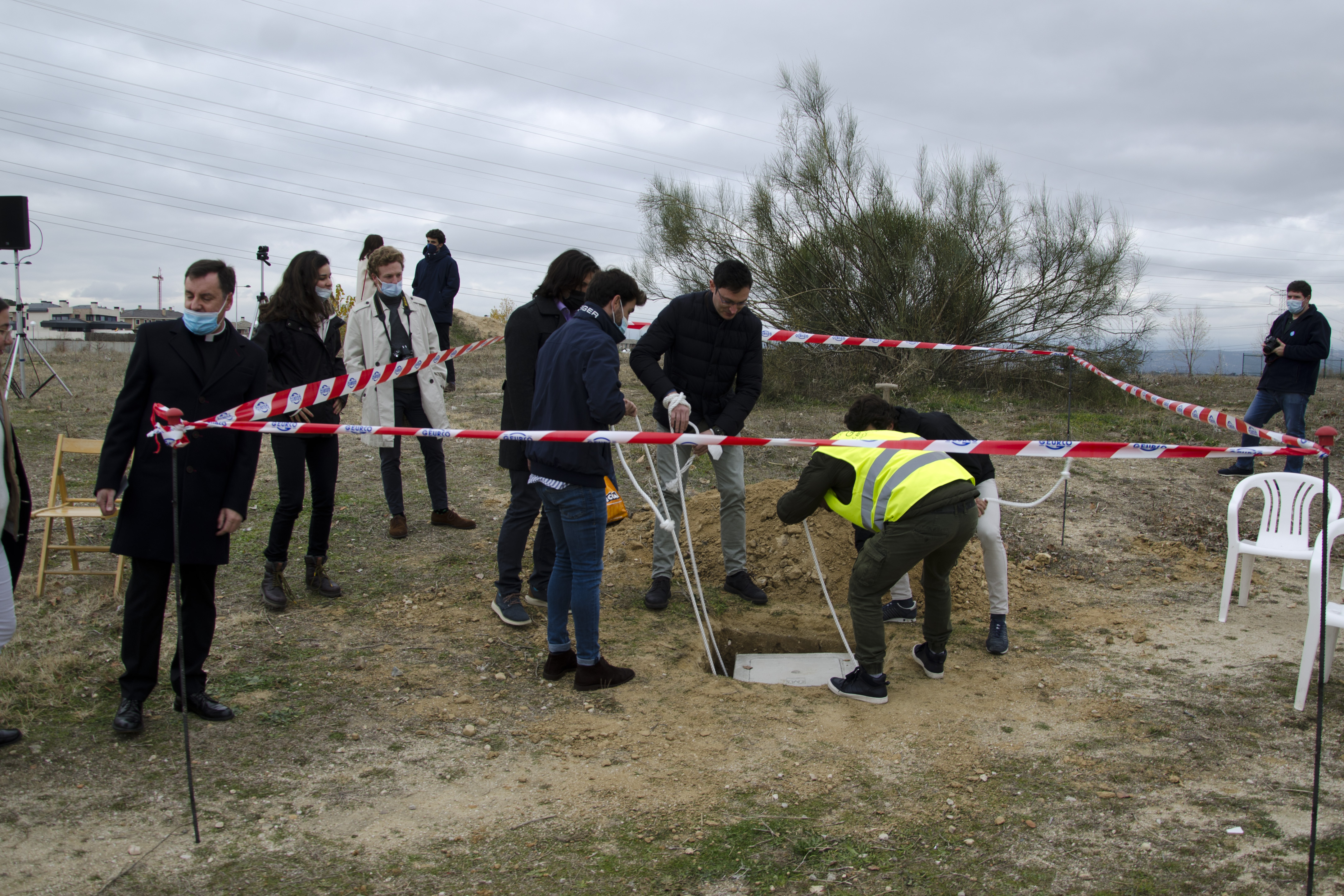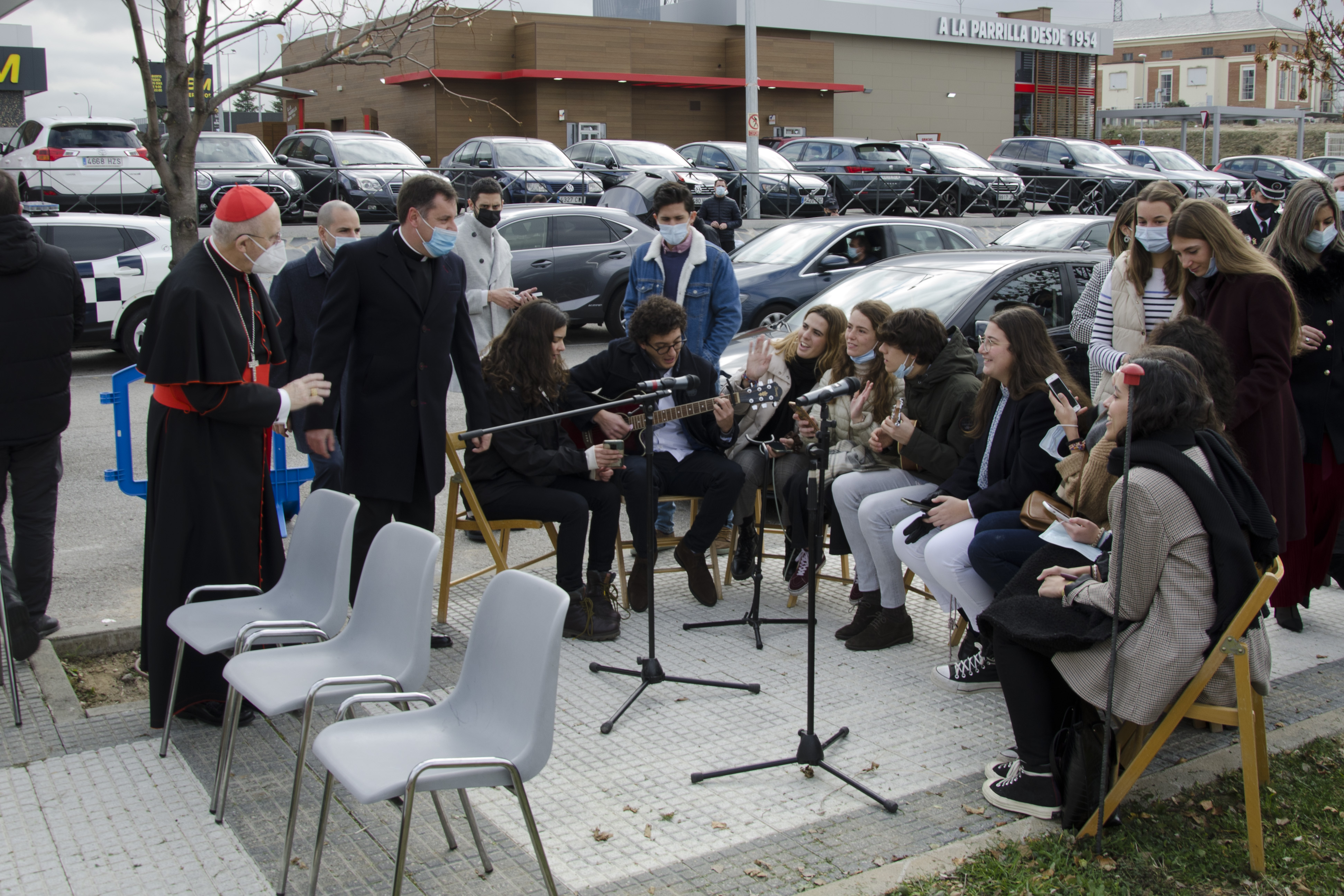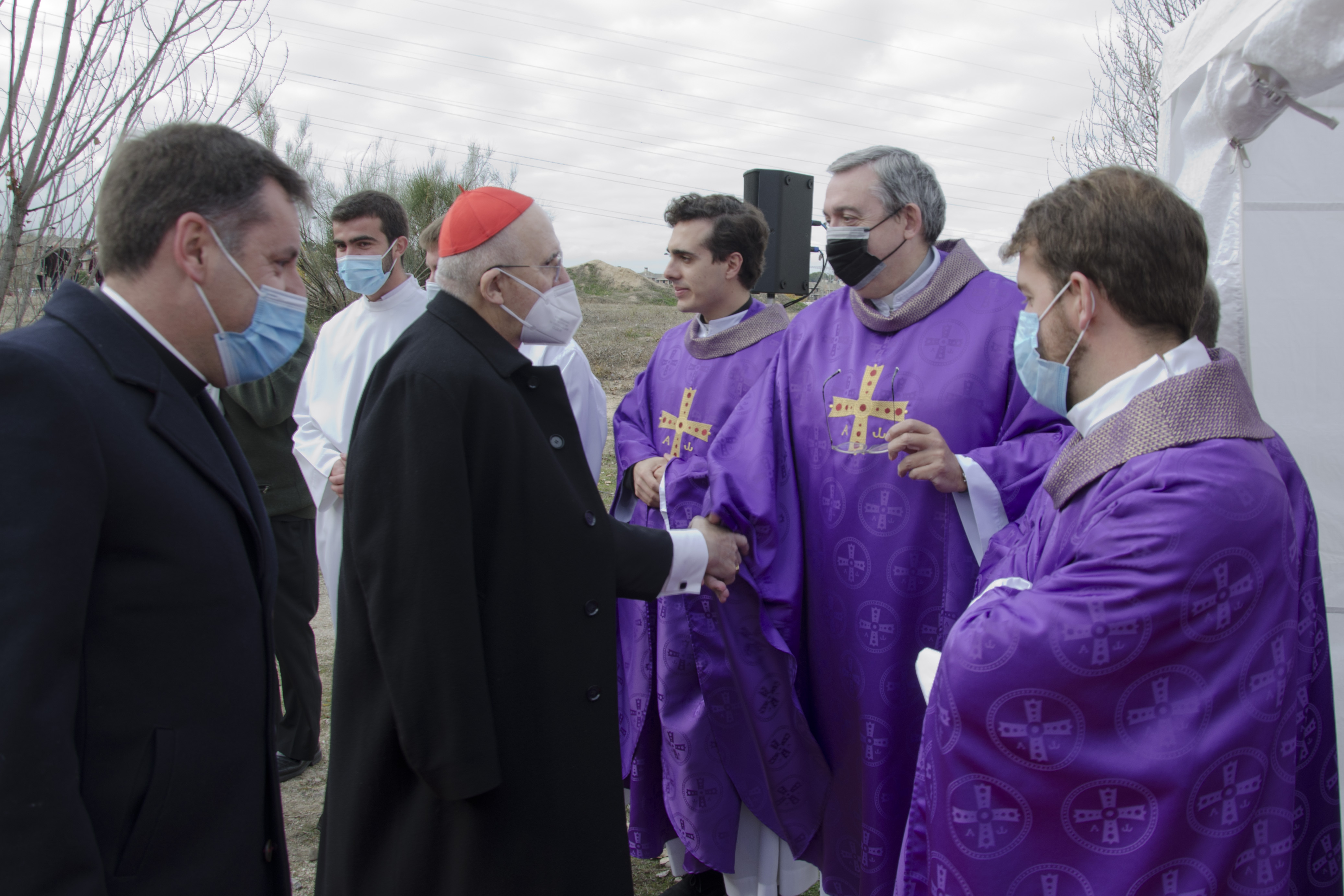 Con gran alegría pudimos asistir a la colocación de la primera piedra del nuevo templo y locales de nuestra parroquia en el terreno que se encuentra en la calle Flauta Mágica esquina Barbero de Sevilla. Lo presidió el Cardenal Arzobispo de Madrid, D. Carlos Osoro acompañado del Cura Párroco D. David Benítez Alonso y con la asistencia de numerosos sacerdotes, entre ellos todos los que habían prestado su servicio en la parroquia.