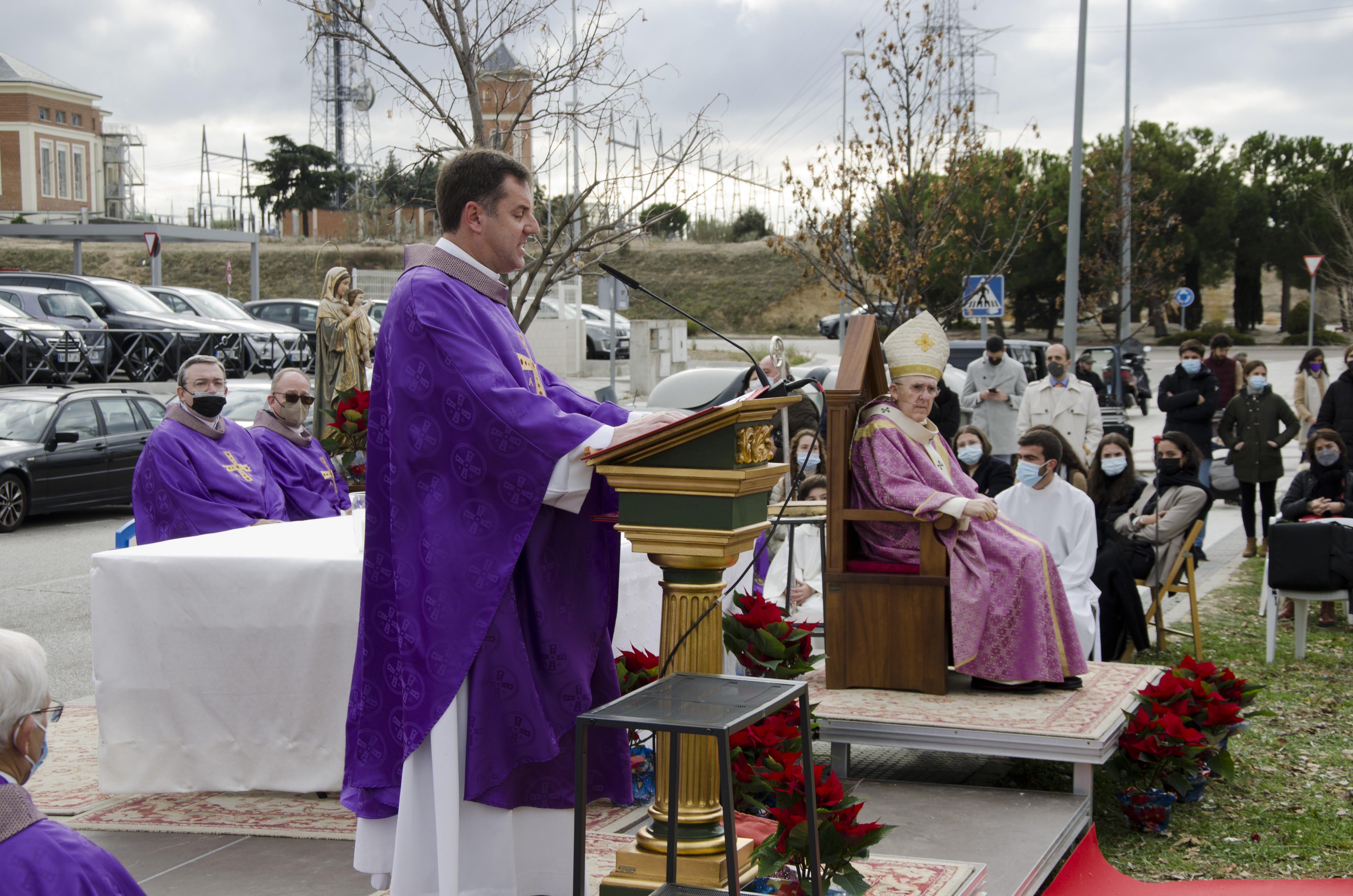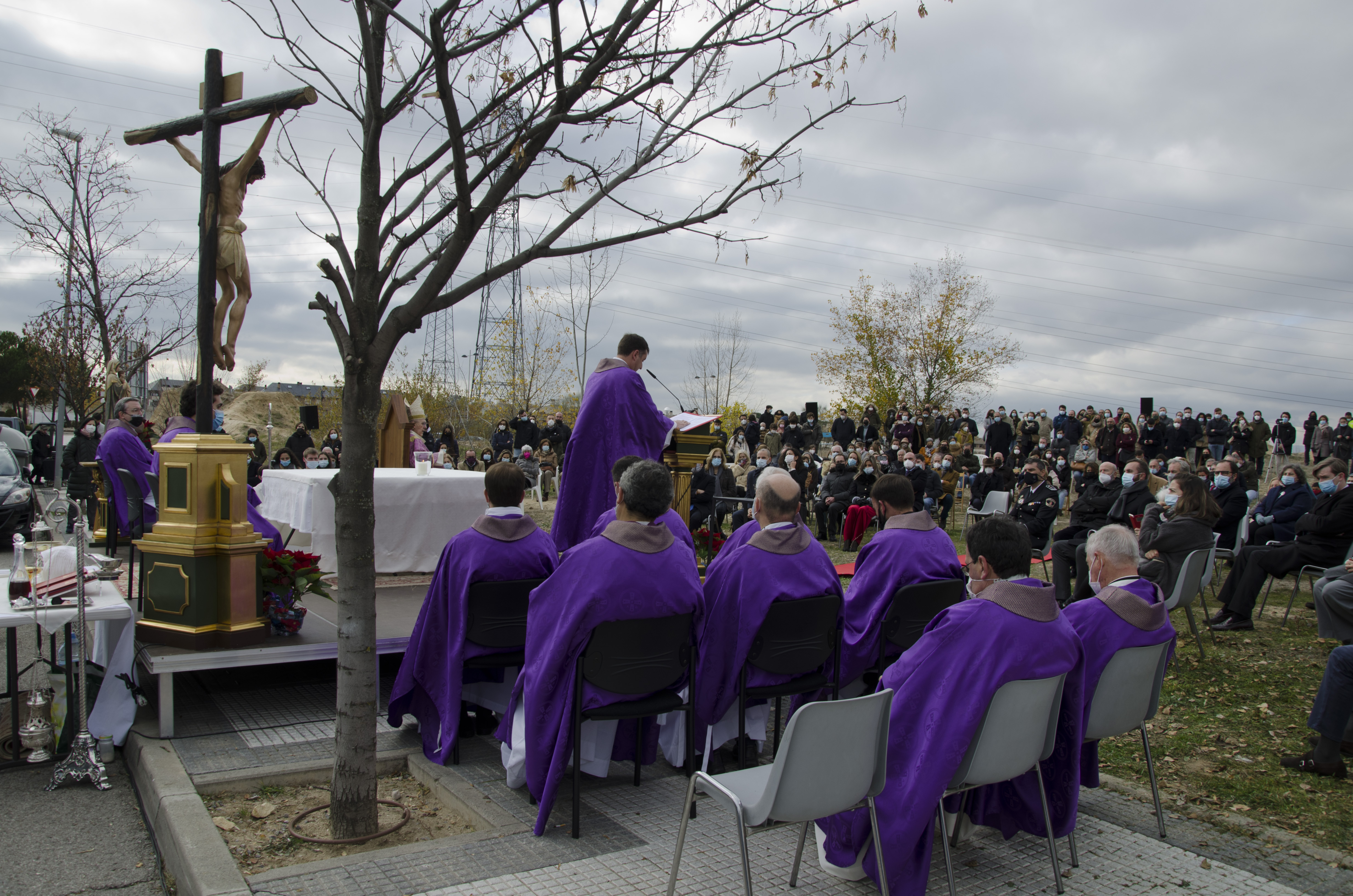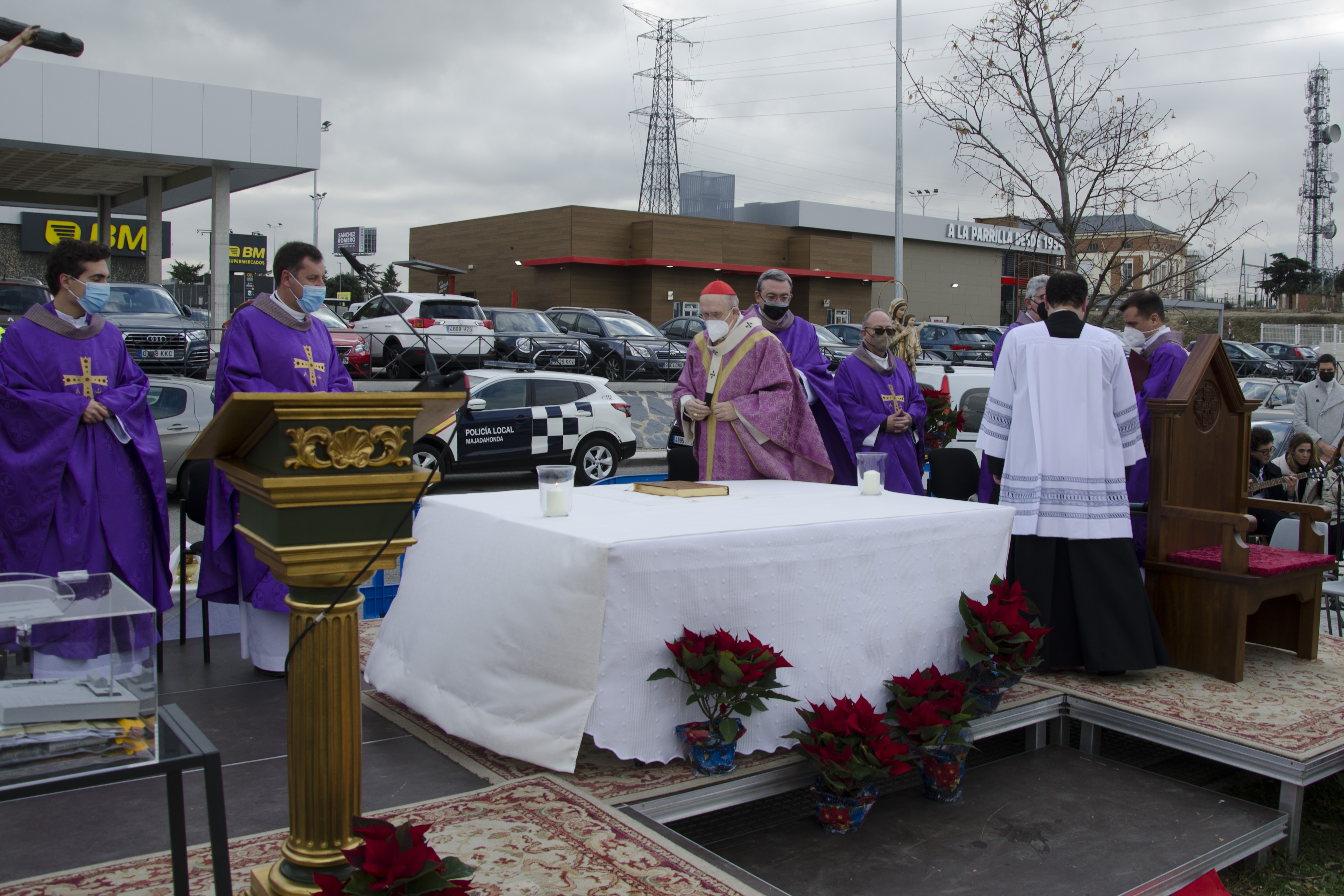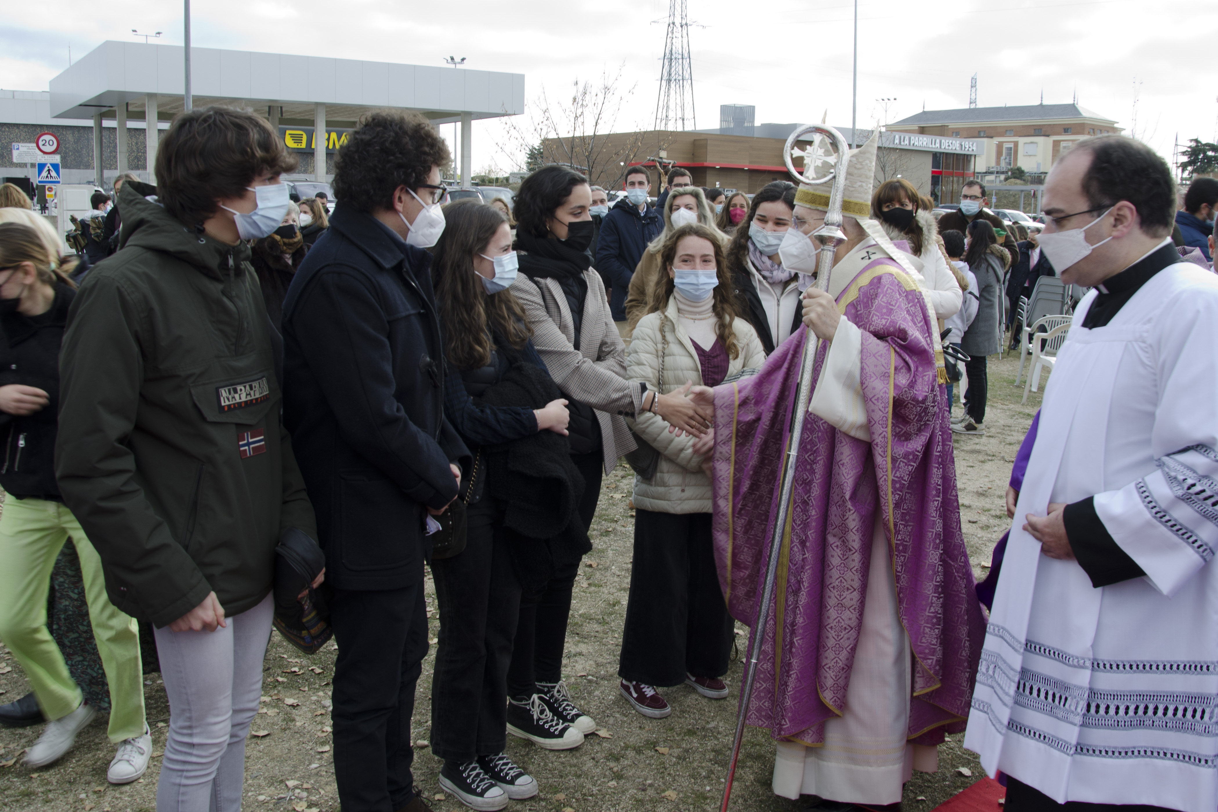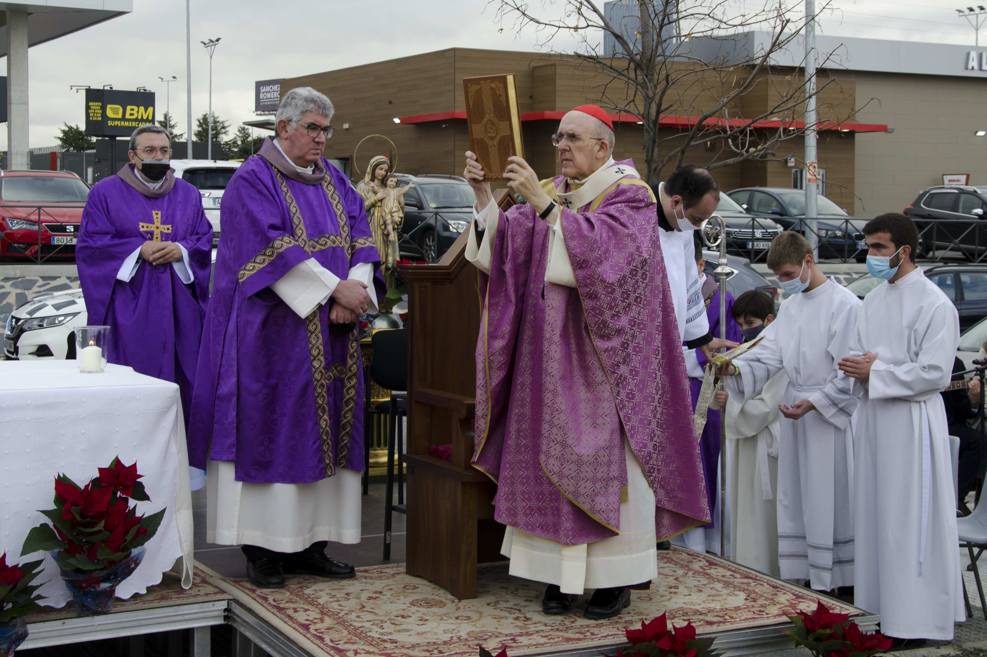 Con gran alegría pudimos asistir a la colocación de la primera piedra del nuevo templo y locales de nuestra parroquia en el terreno que se encuentra en la calle Flauta Mágica esquina Barbero de Sevilla. Lo presidió el Cardenal Arzobispo de Madrid, D. Carlos Osoro acompañado del Cura Párroco D. David Benítez Alonso y con la asistencia de numerosos sacerdotes, entre ellos todos los que habían prestado su servicio en la parroquia.