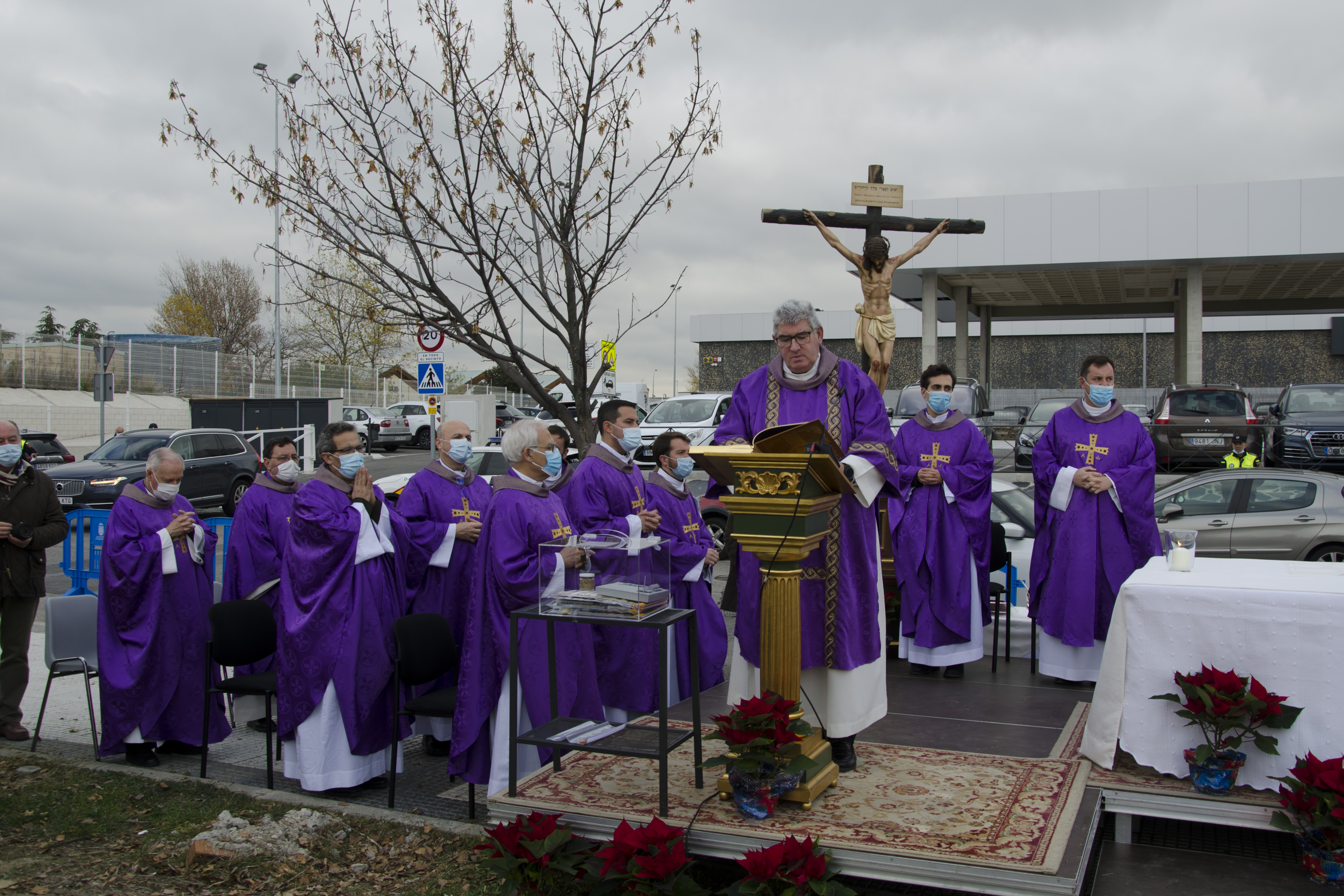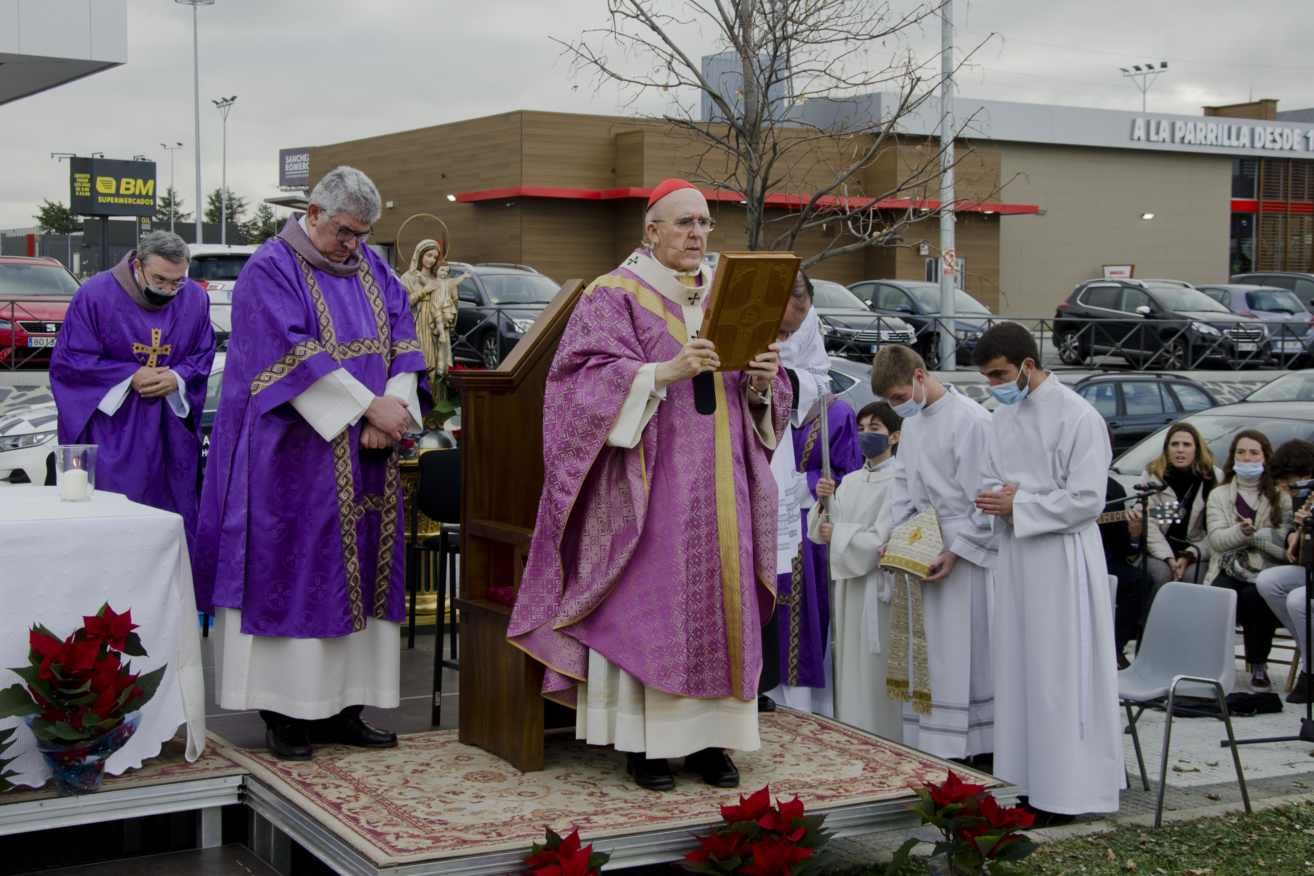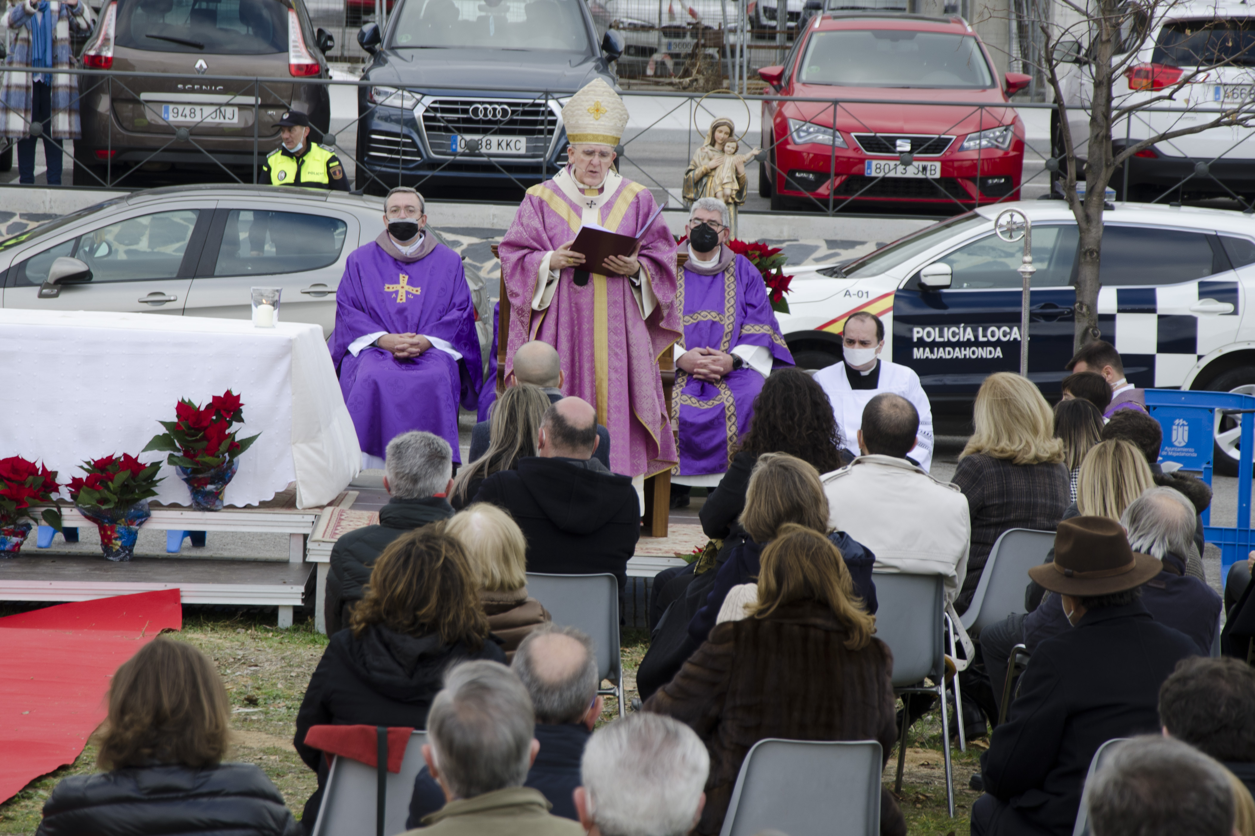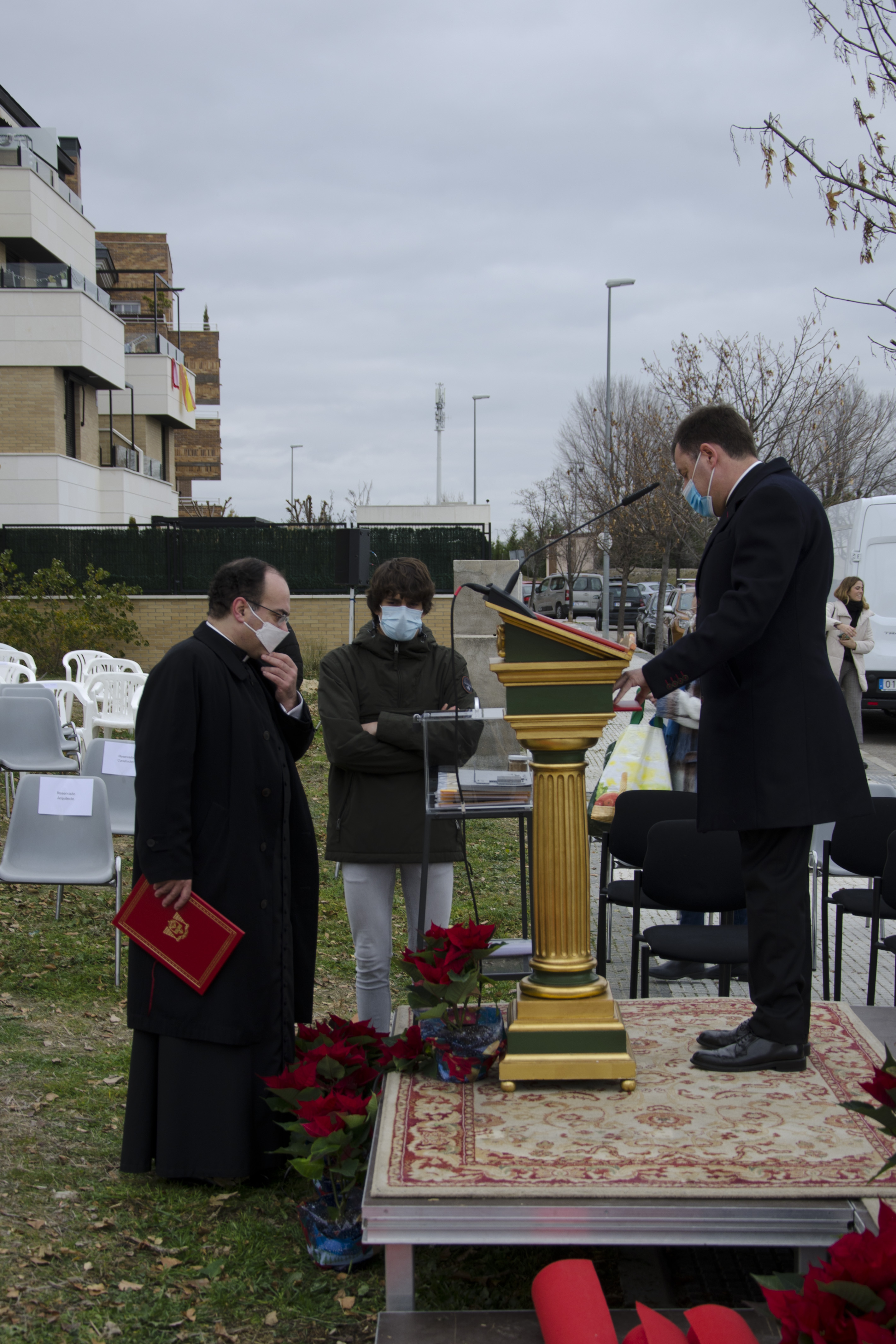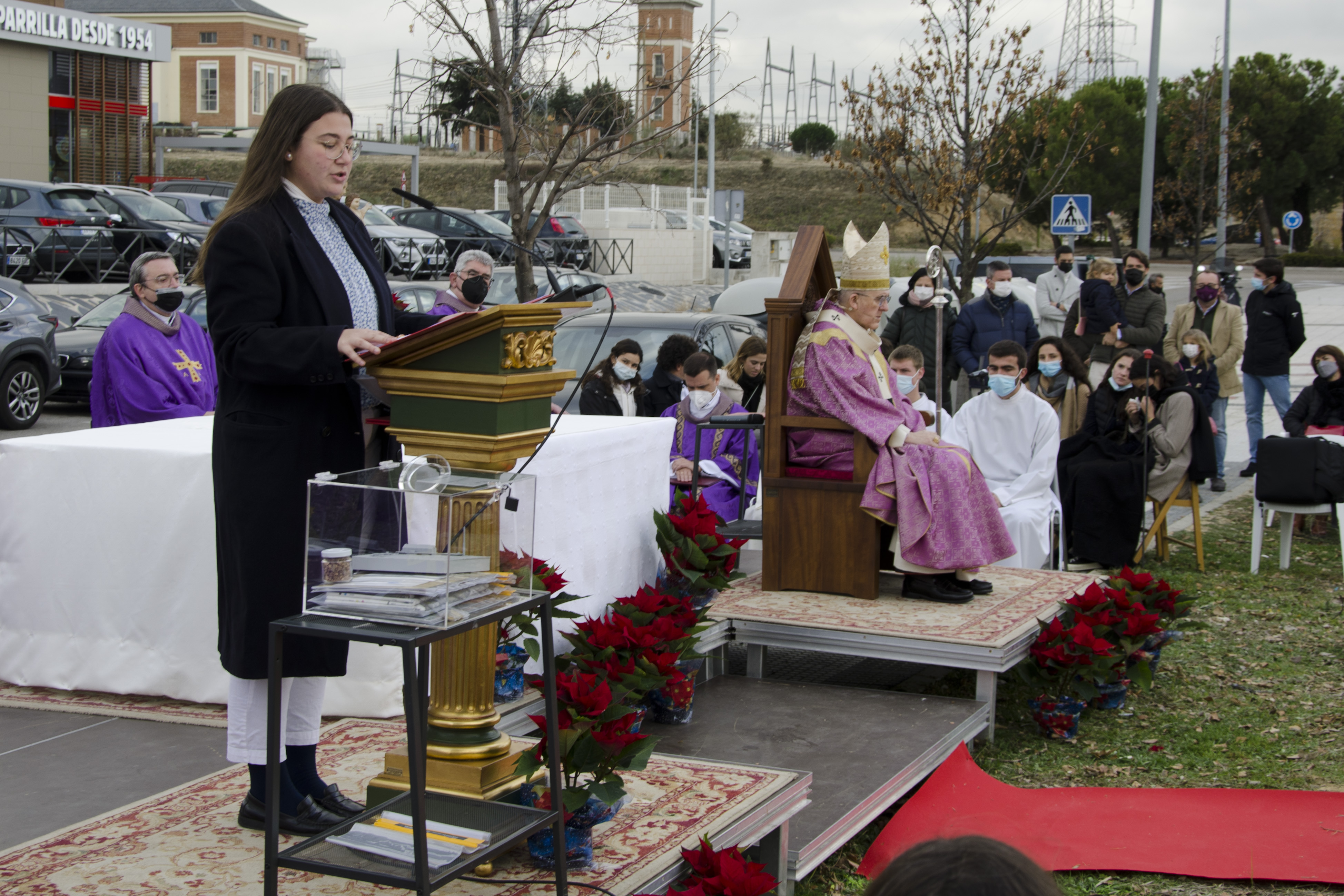 Con gran alegría pudimos asistir a la colocación de la primera piedra del nuevo templo y locales de nuestra parroquia en el terreno que se encuentra en la calle Flauta Mágica esquina Barbero de Sevilla. Lo presidió el Cardenal Arzobispo de Madrid, D. Carlos Osoro acompañado del Cura Párroco D. David Benítez Alonso y con la asistencia de numerosos sacerdotes, entre ellos todos los que habían prestado su servicio en la parroquia.