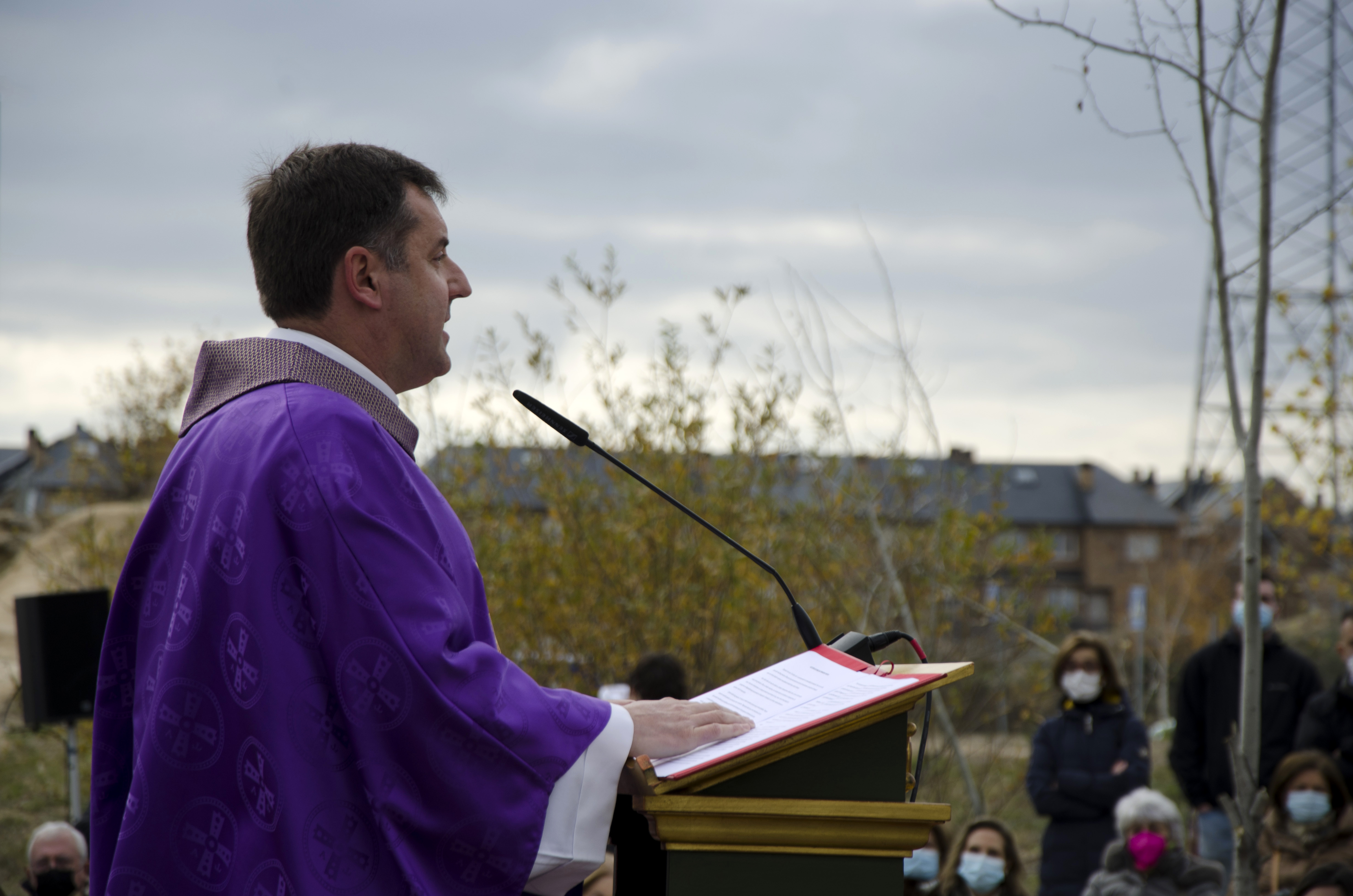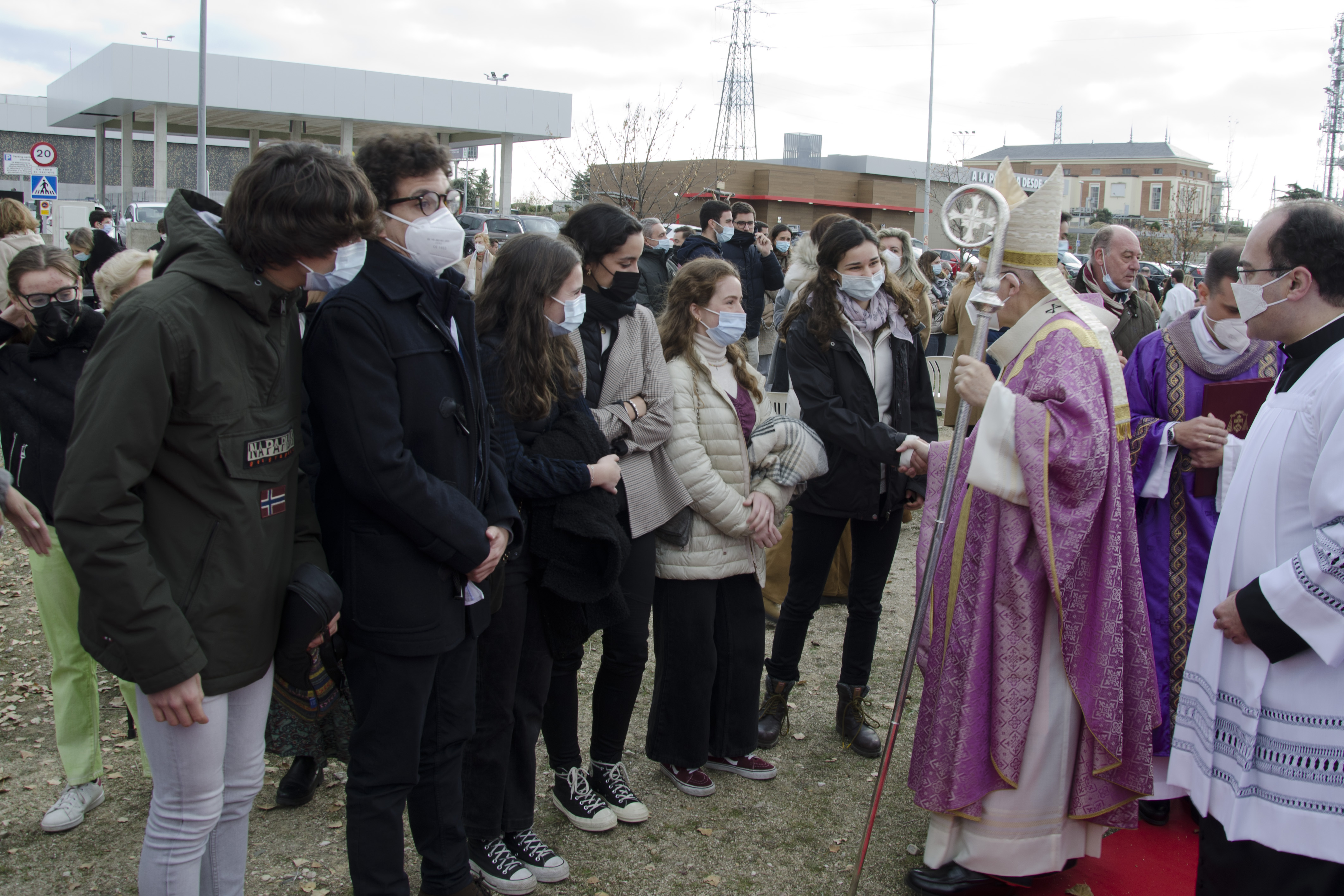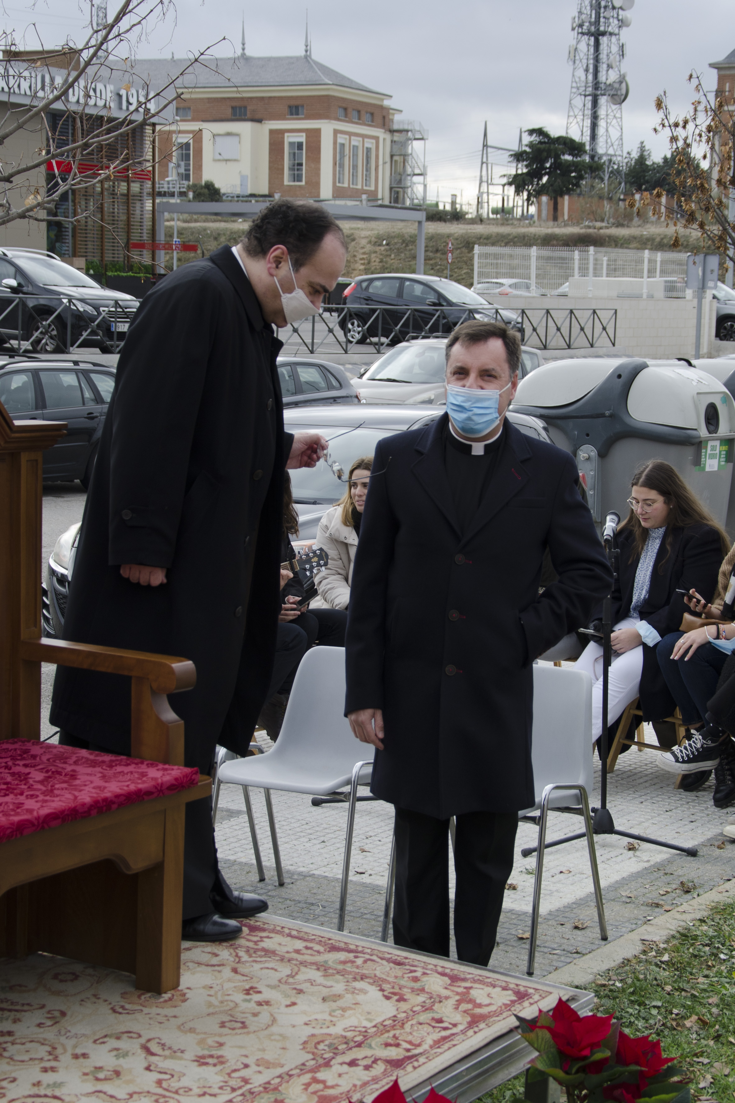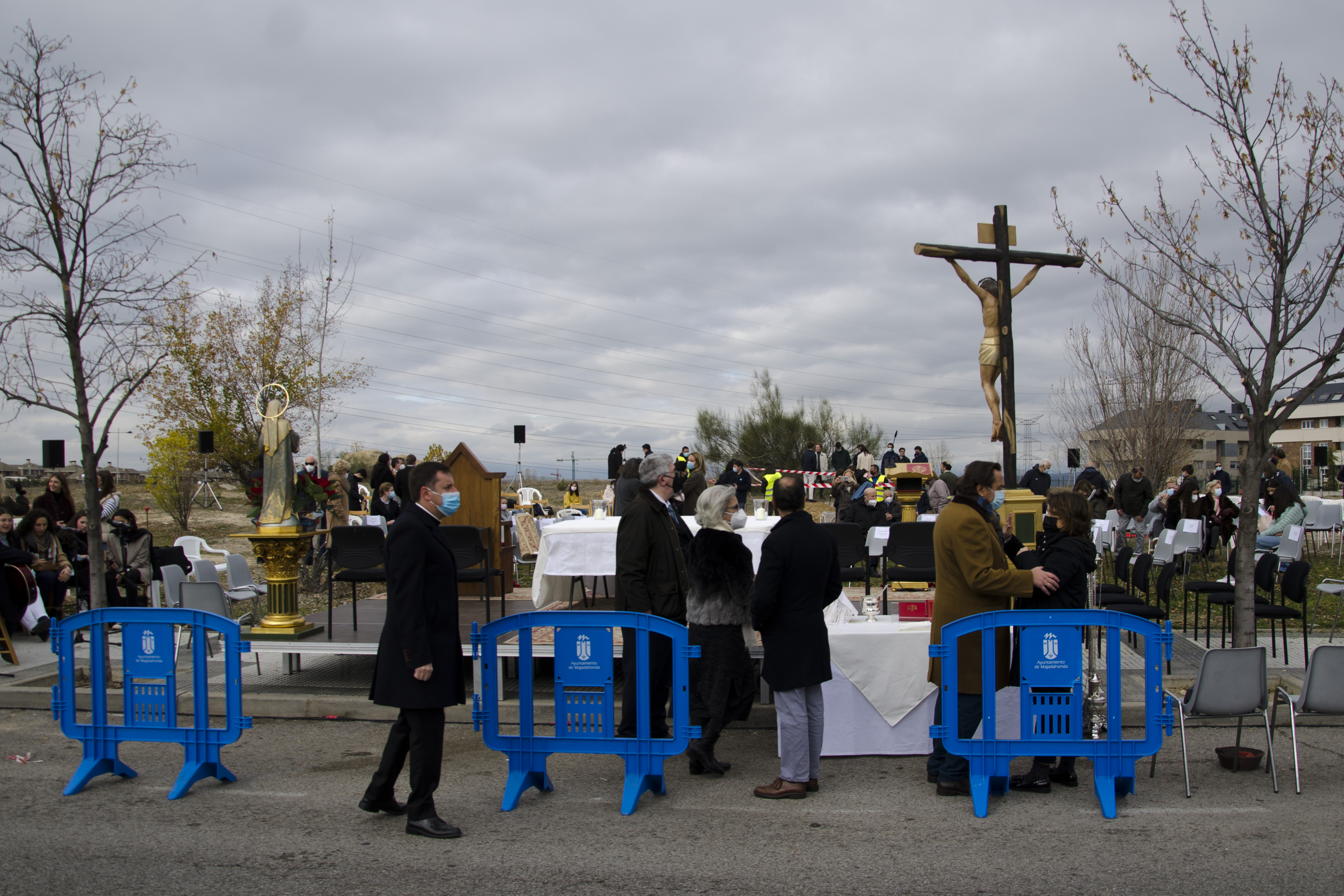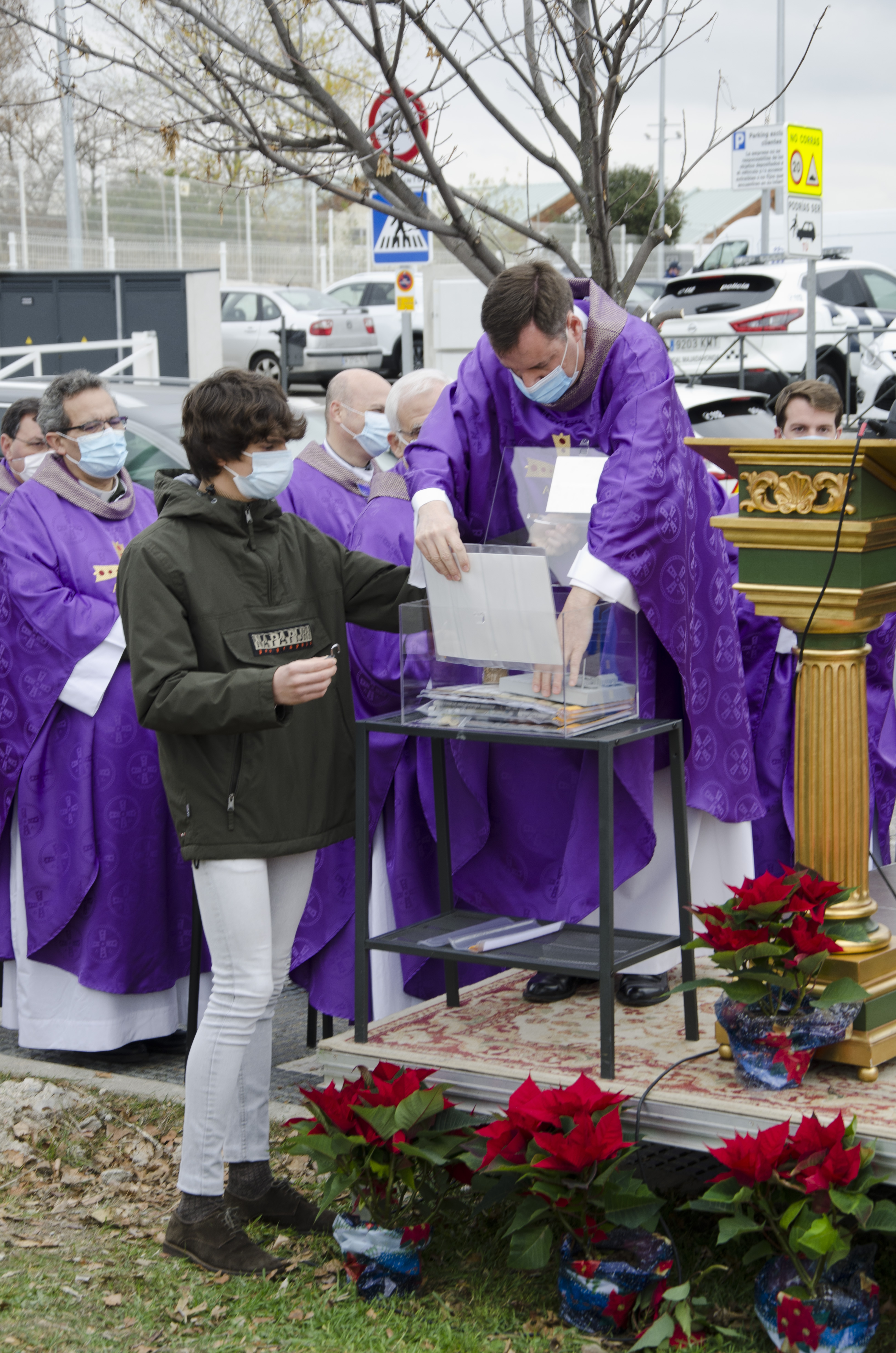 Con gran alegría pudimos asistir a la colocación de la primera piedra del nuevo templo y locales de nuestra parroquia en el terreno que se encuentra en la calle Flauta Mágica esquina Barbero de Sevilla. Lo presidió el Cardenal Arzobispo de Madrid, D. Carlos Osoro acompañado del Cura Párroco D. David Benítez Alonso y con la asistencia de numerosos sacerdotes, entre ellos todos los que habían prestado su servicio en la parroquia.