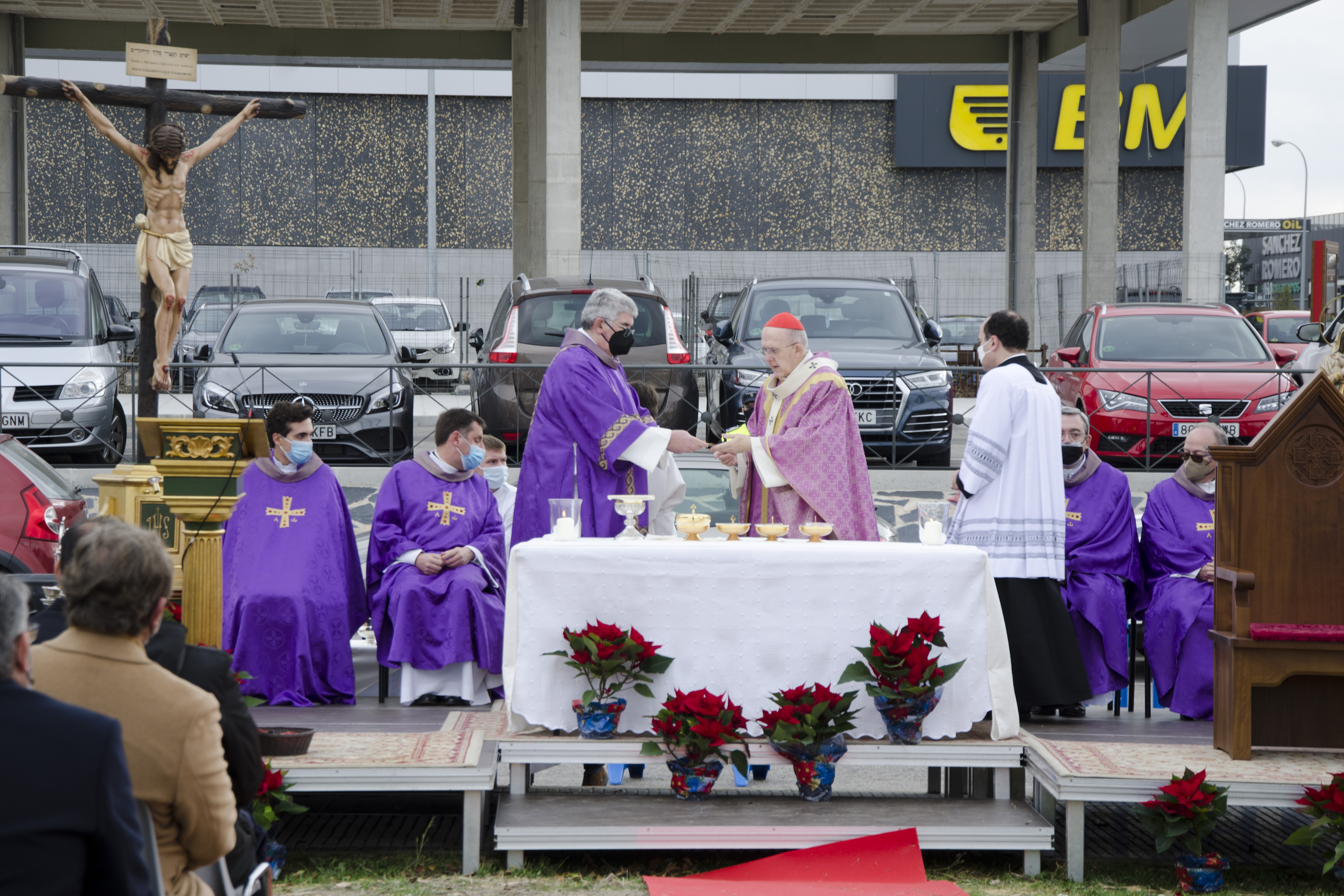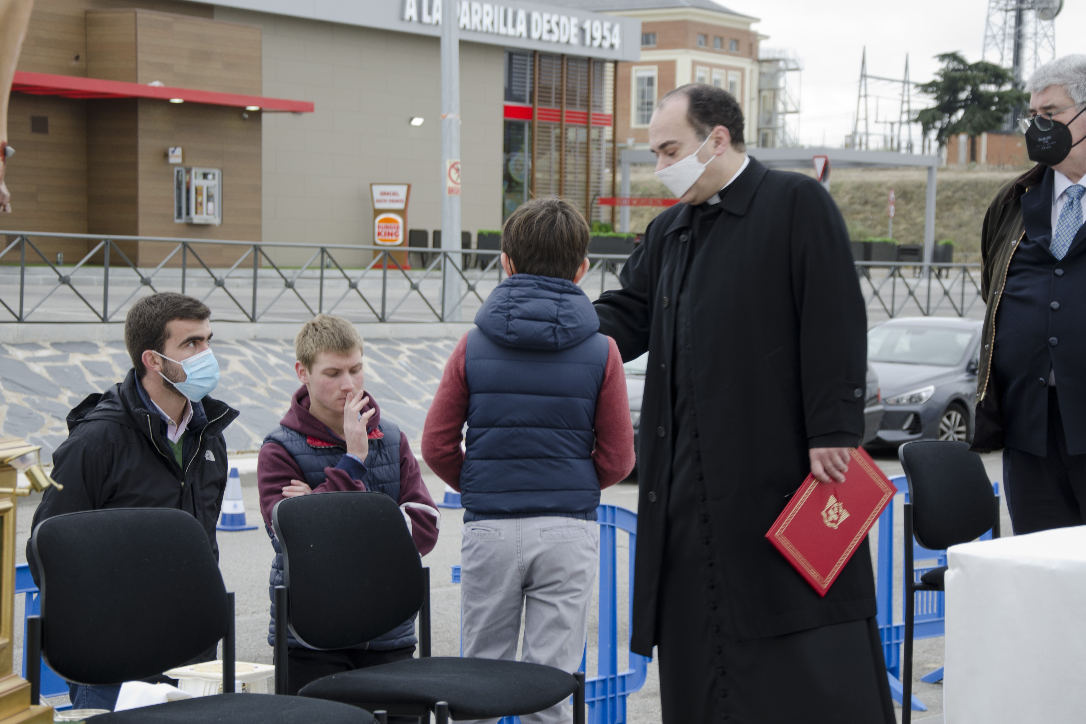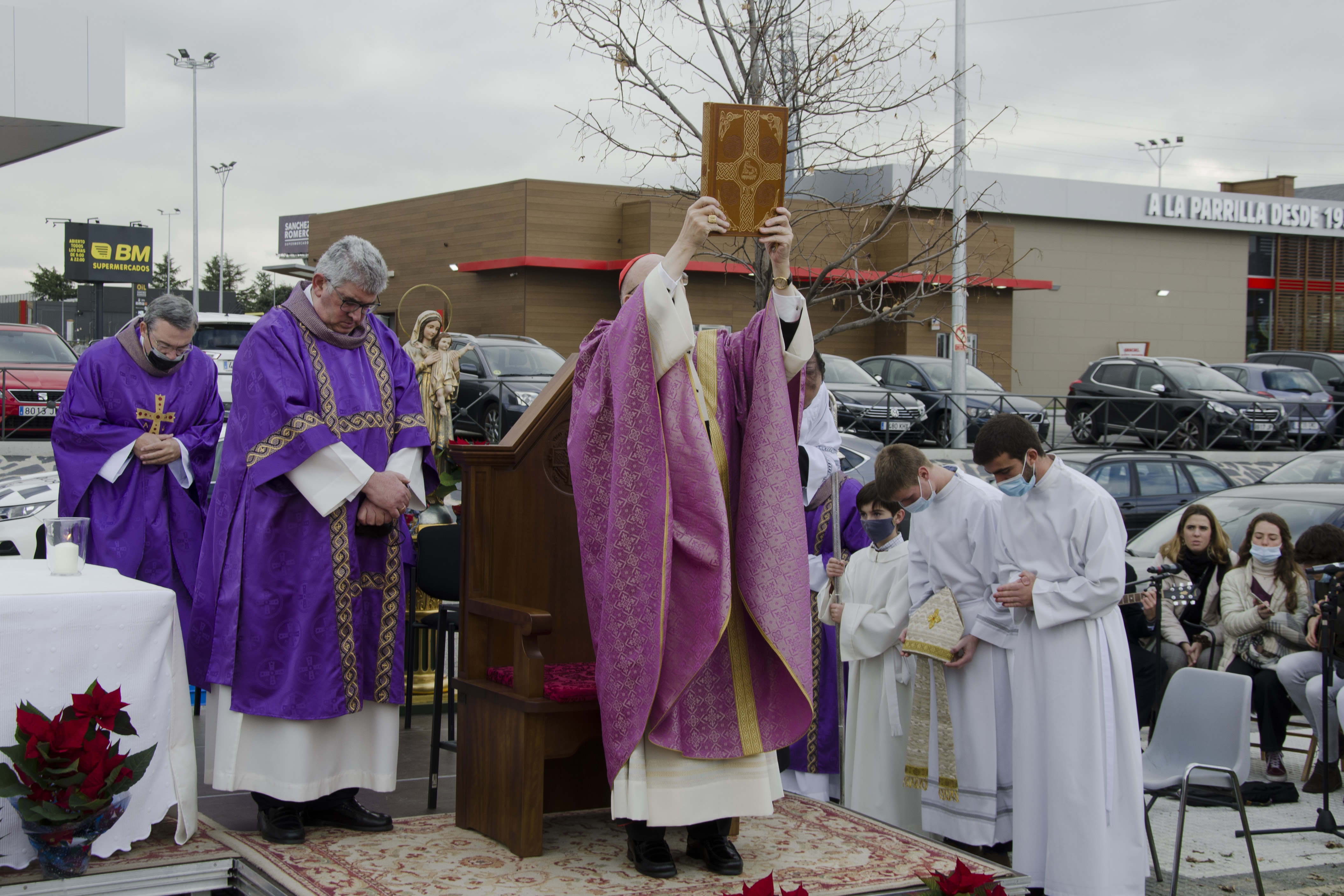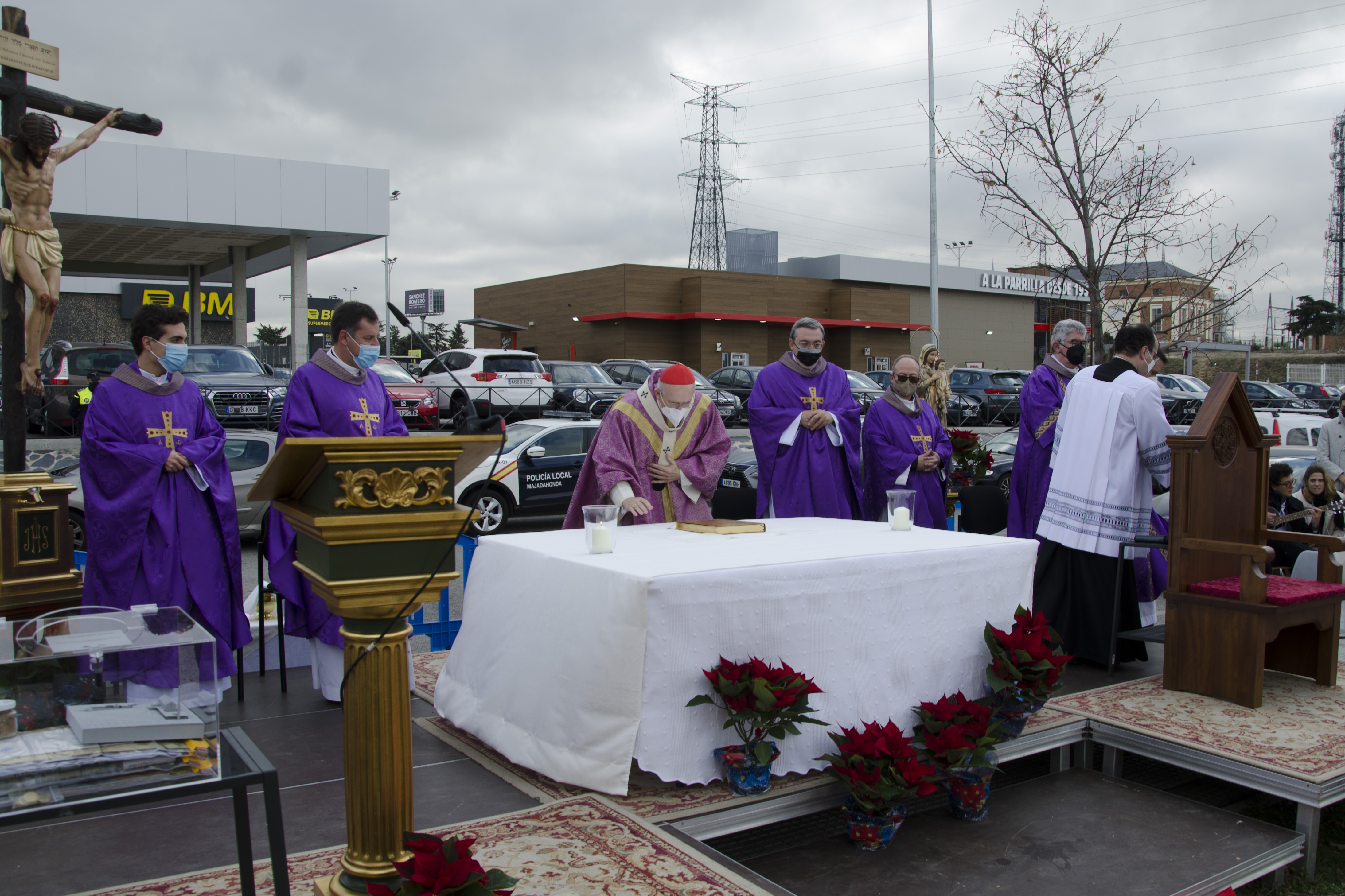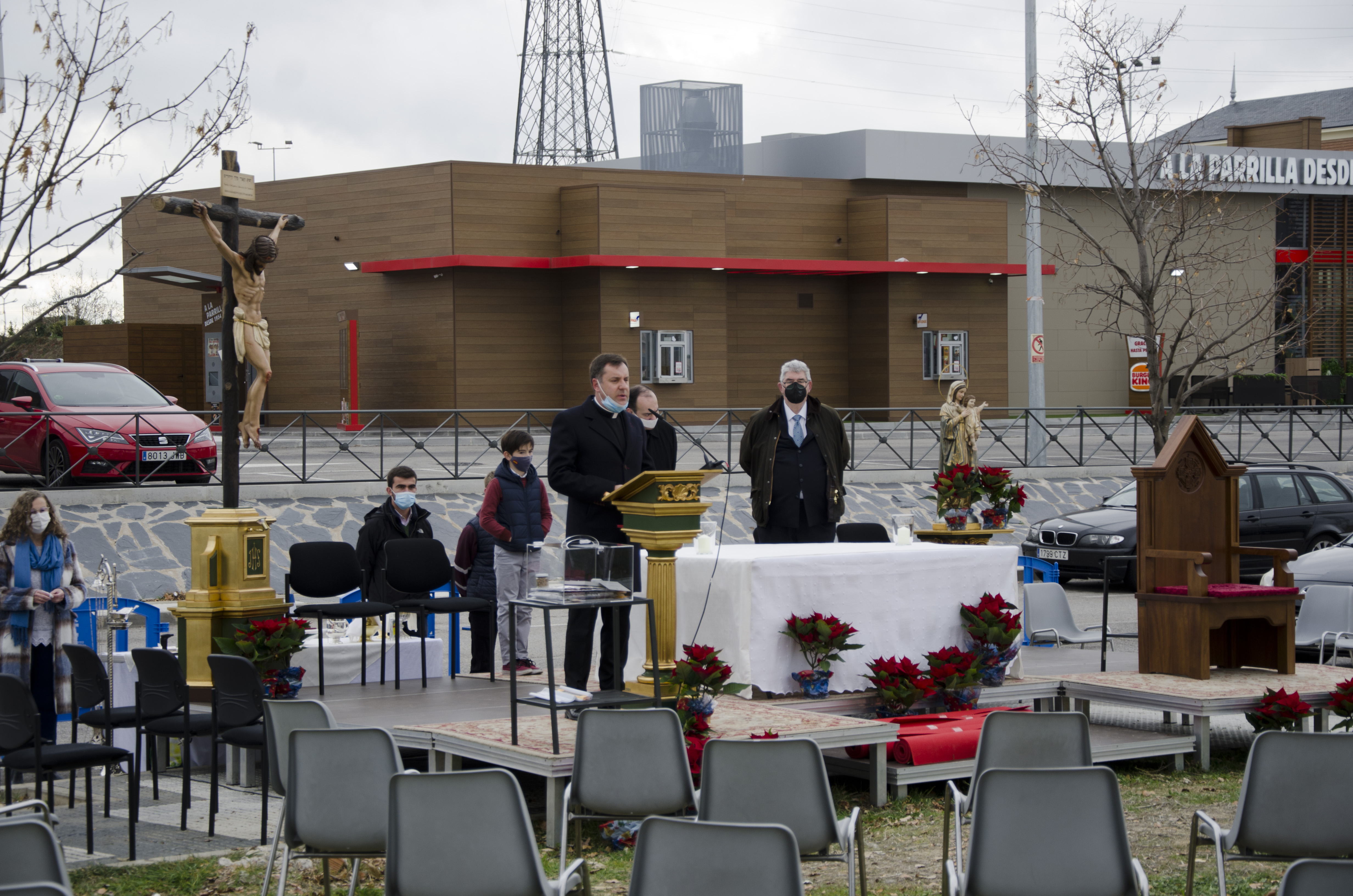 Con gran alegría pudimos asistir a la colocación de la primera piedra del nuevo templo y locales de nuestra parroquia en el terreno que se encuentra en la calle Flauta Mágica esquina Barbero de Sevilla. Lo presidió el Cardenal Arzobispo de Madrid, D. Carlos Osoro acompañado del Cura Párroco D. David Benítez Alonso y con la asistencia de numerosos sacerdotes, entre ellos todos los que habían prestado su servicio en la parroquia.