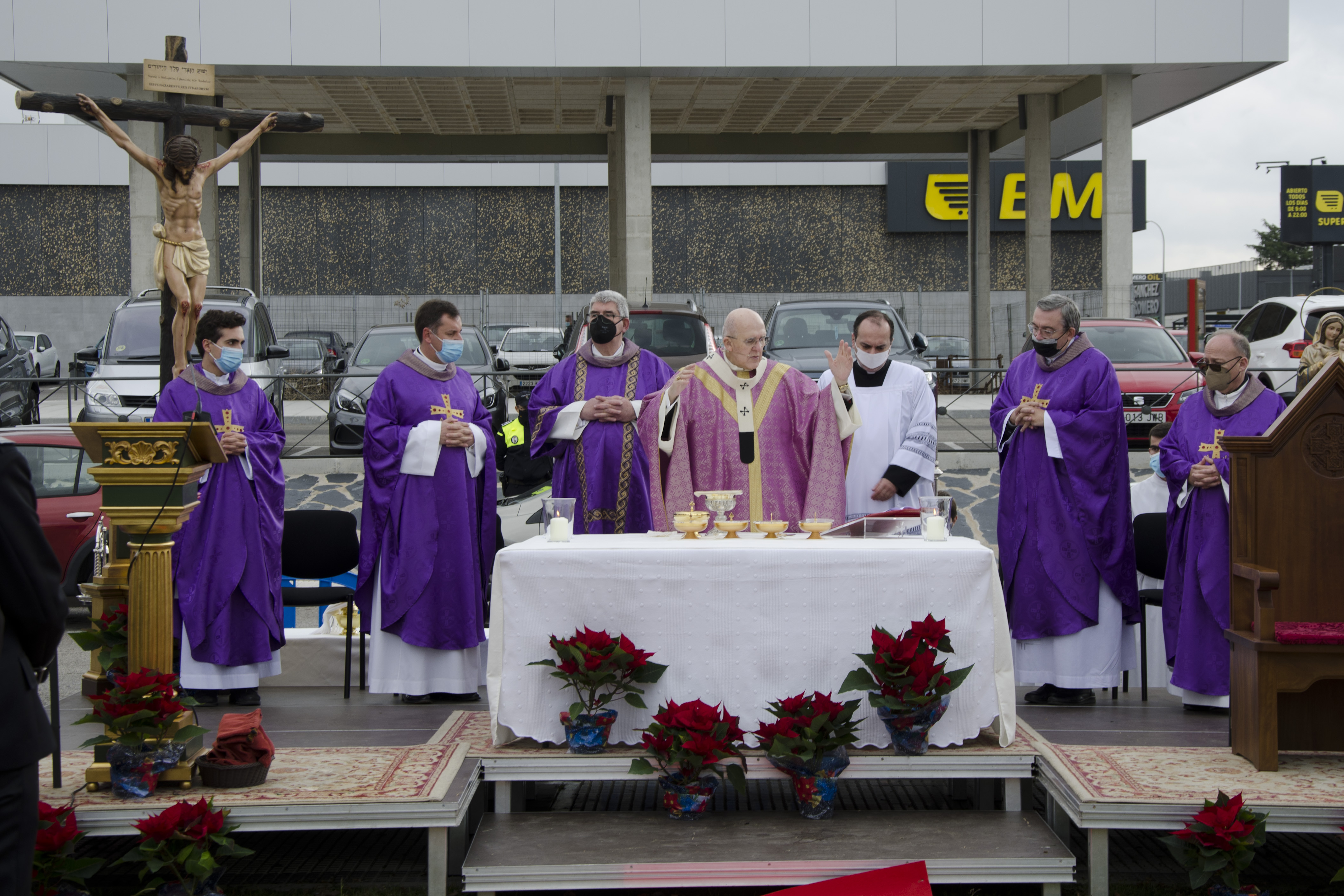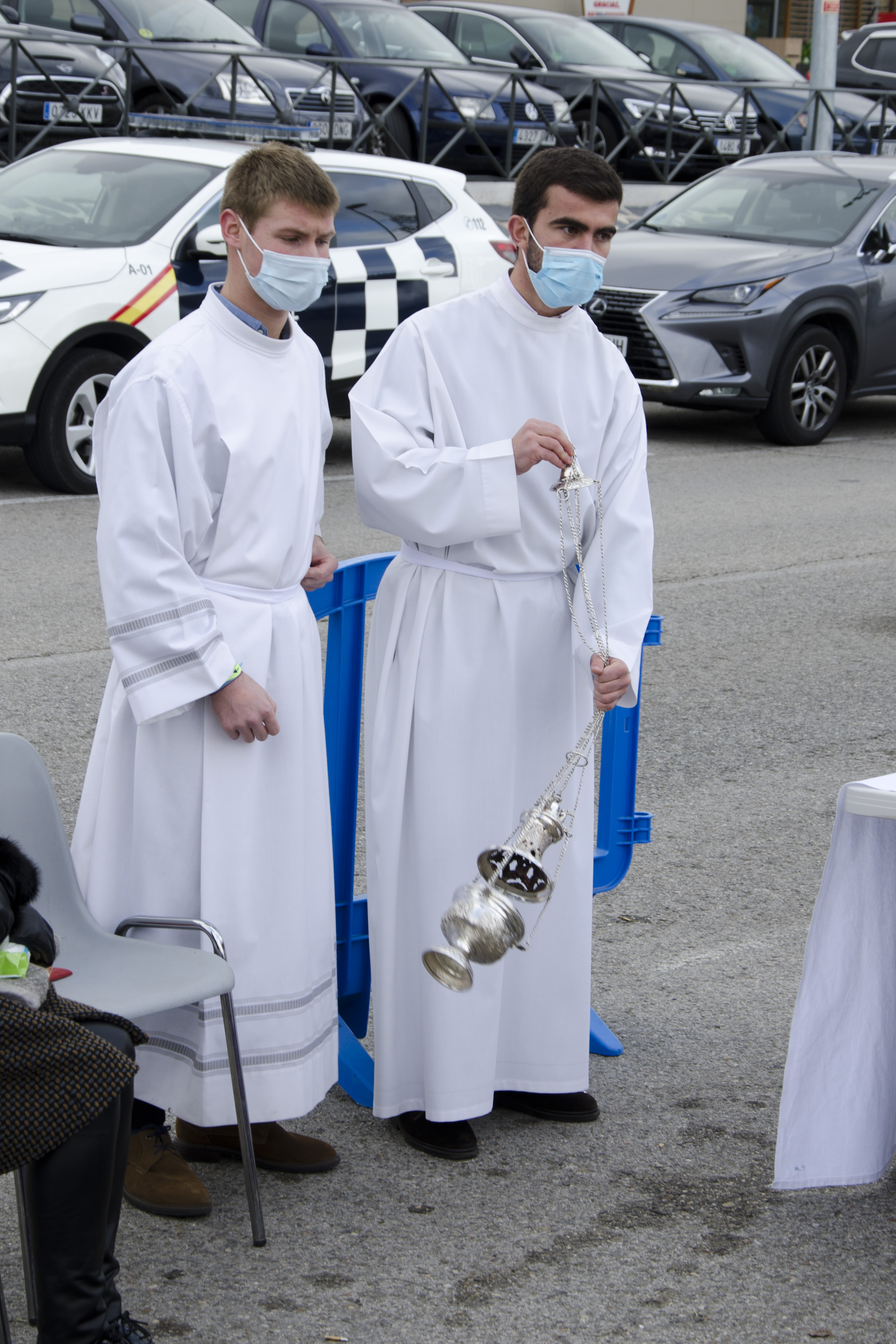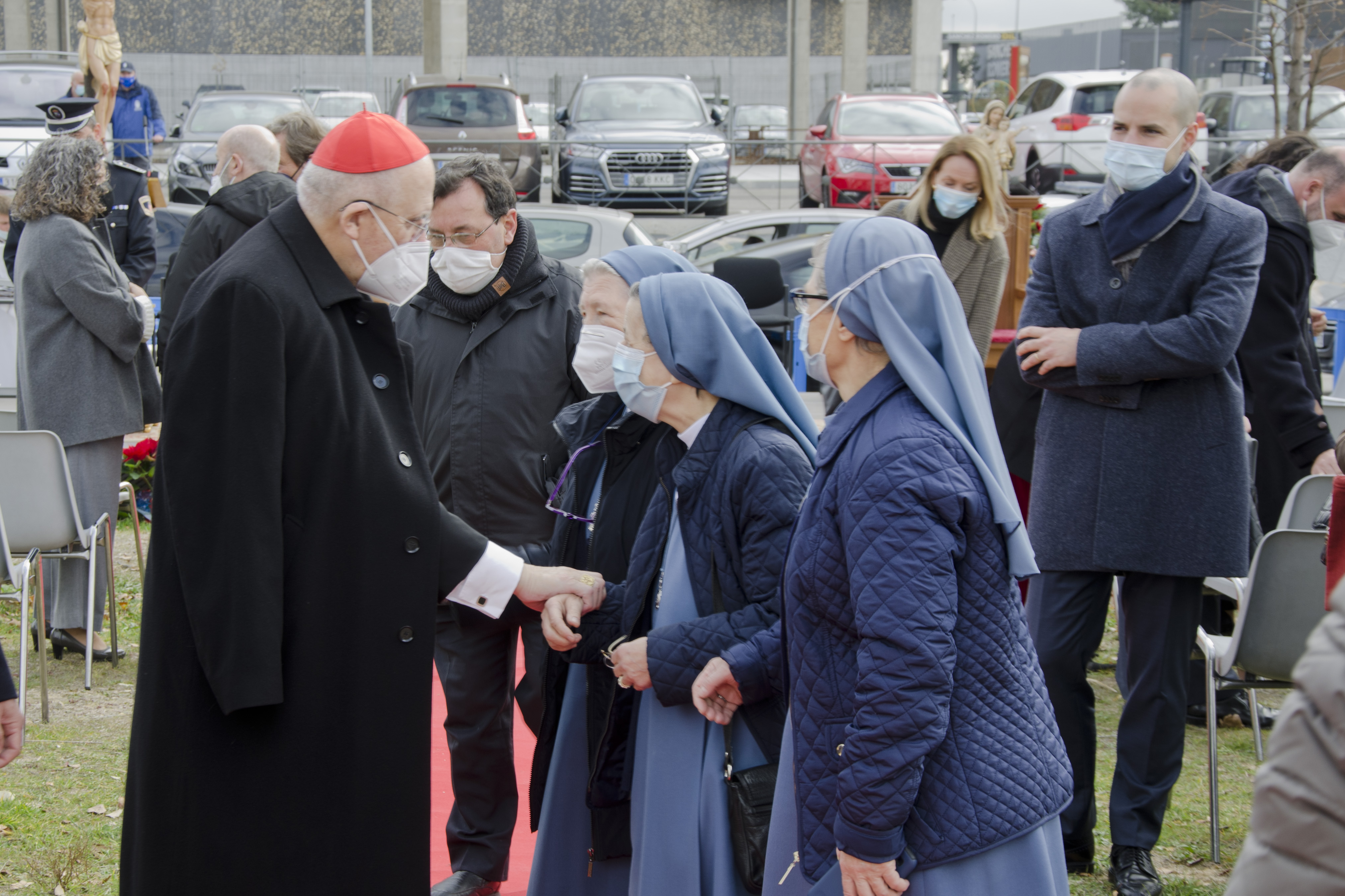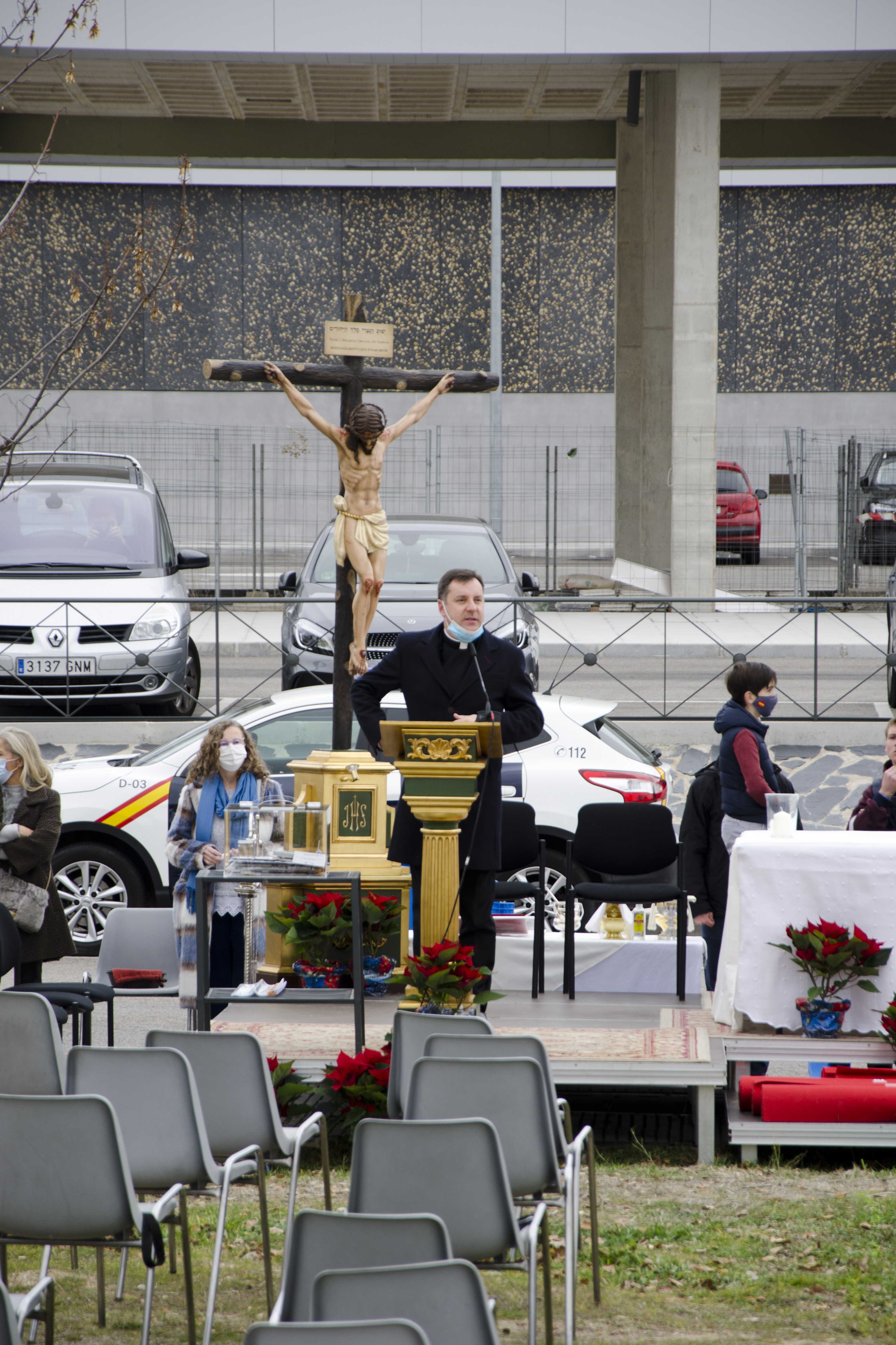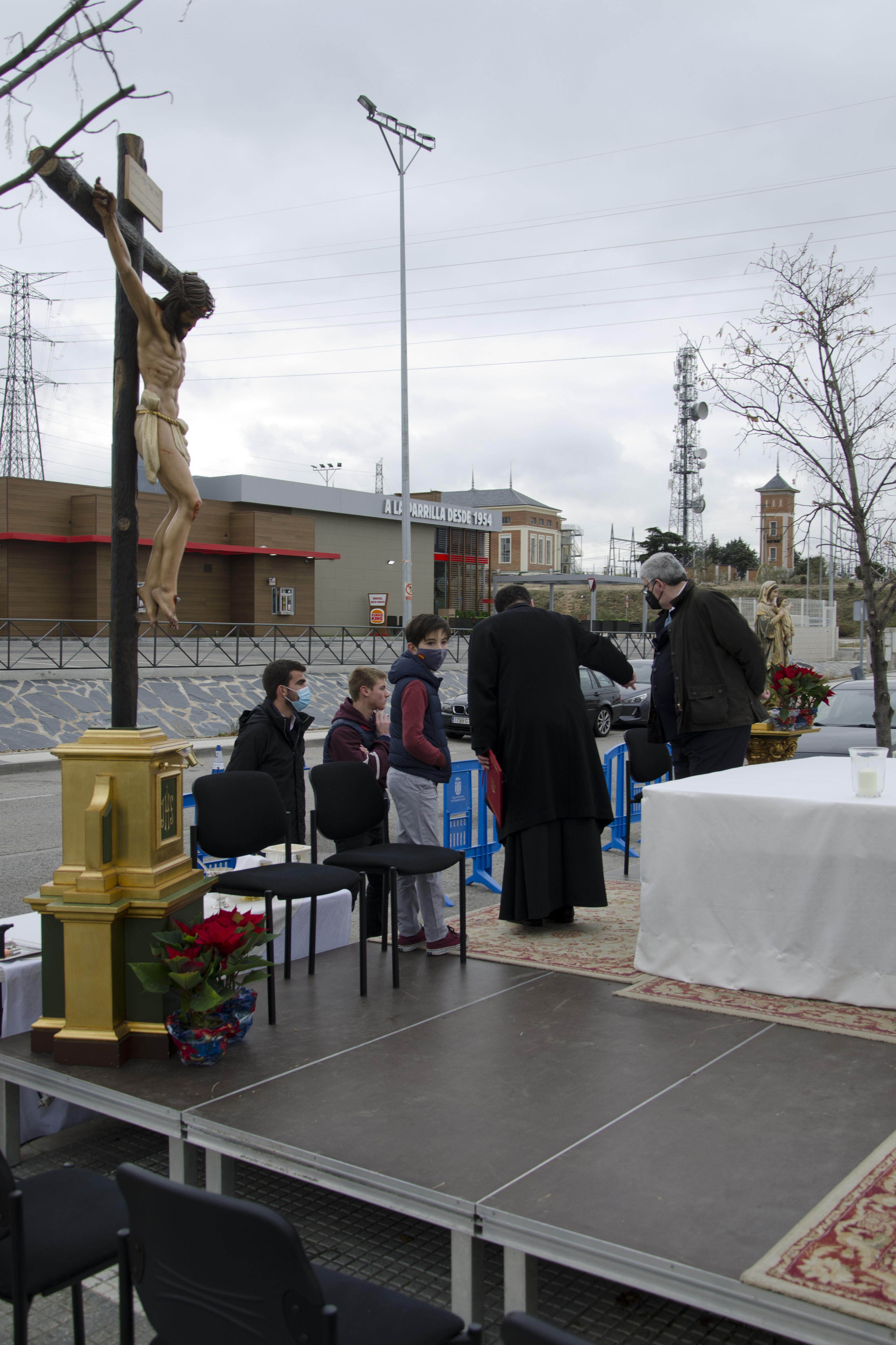 Con gran alegría pudimos asistir a la colocación de la primera piedra del nuevo templo y locales de nuestra parroquia en el terreno que se encuentra en la calle Flauta Mágica esquina Barbero de Sevilla. Lo presidió el Cardenal Arzobispo de Madrid, D. Carlos Osoro acompañado del Cura Párroco D. David Benítez Alonso y con la asistencia de numerosos sacerdotes, entre ellos todos los que habían prestado su servicio en la parroquia.