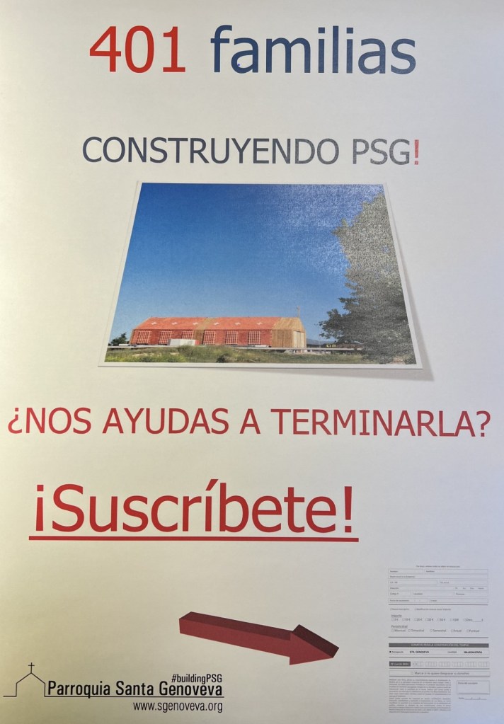 Hemos construido jutnos una casa al Señor. Pero una parroquia no es solo el templo, aún queda mucho que necesitamos hacer: Debemos terminar los salones y las viviendas parroquiales, la decoración del templo, tanto la fachada, como el interior; hay que asfaltar el aparcamiento y tantos otros detalles. No podemos olvidar atender a la caridad y a los que más lo necesitan, así como colaborar a todo el sostenimiento de la Iglesia.